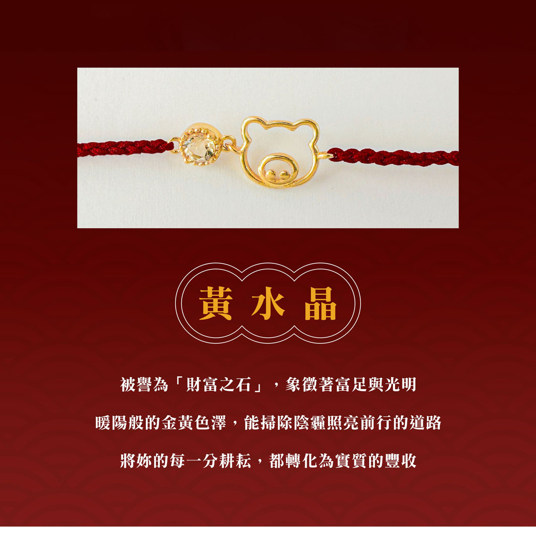以細緻紅繩編織,結合黃水晶和十二生肖專屬寓意,將每一分耕耘化為實質收穫。精緻輕奢設計,長度可調,是新年送禮與犒賞自我的最佳選擇。