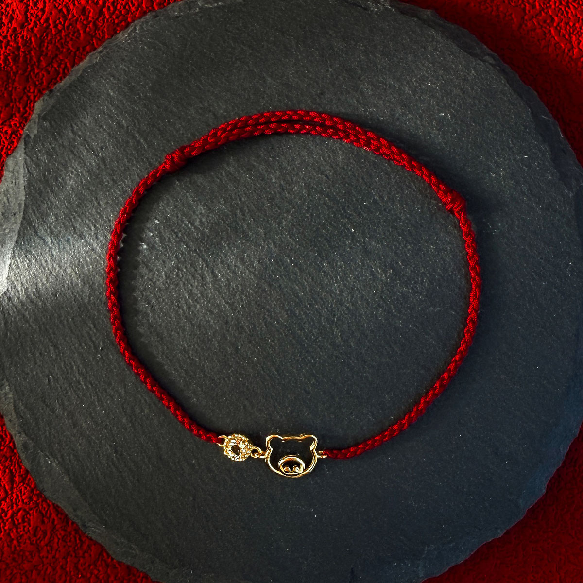 天然石│十二生肖│黃水晶圓滿豬紅線 ‧ 純銀手鍊