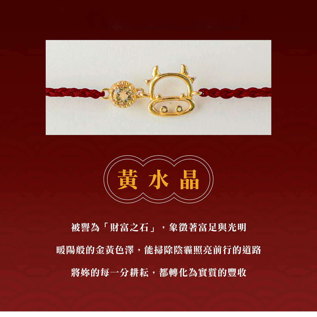 以細緻紅繩編織,結合黃水晶和十二生肖專屬寓意,將每一分耕耘化為實質收穫。精緻輕奢設計,長度可調,是新年送禮與犒賞自我的最佳選擇。
