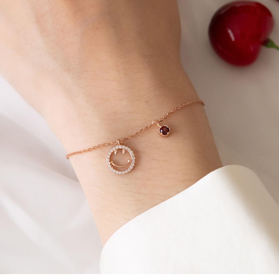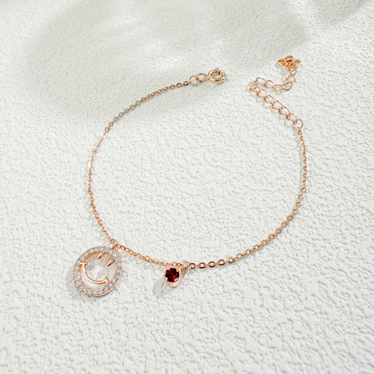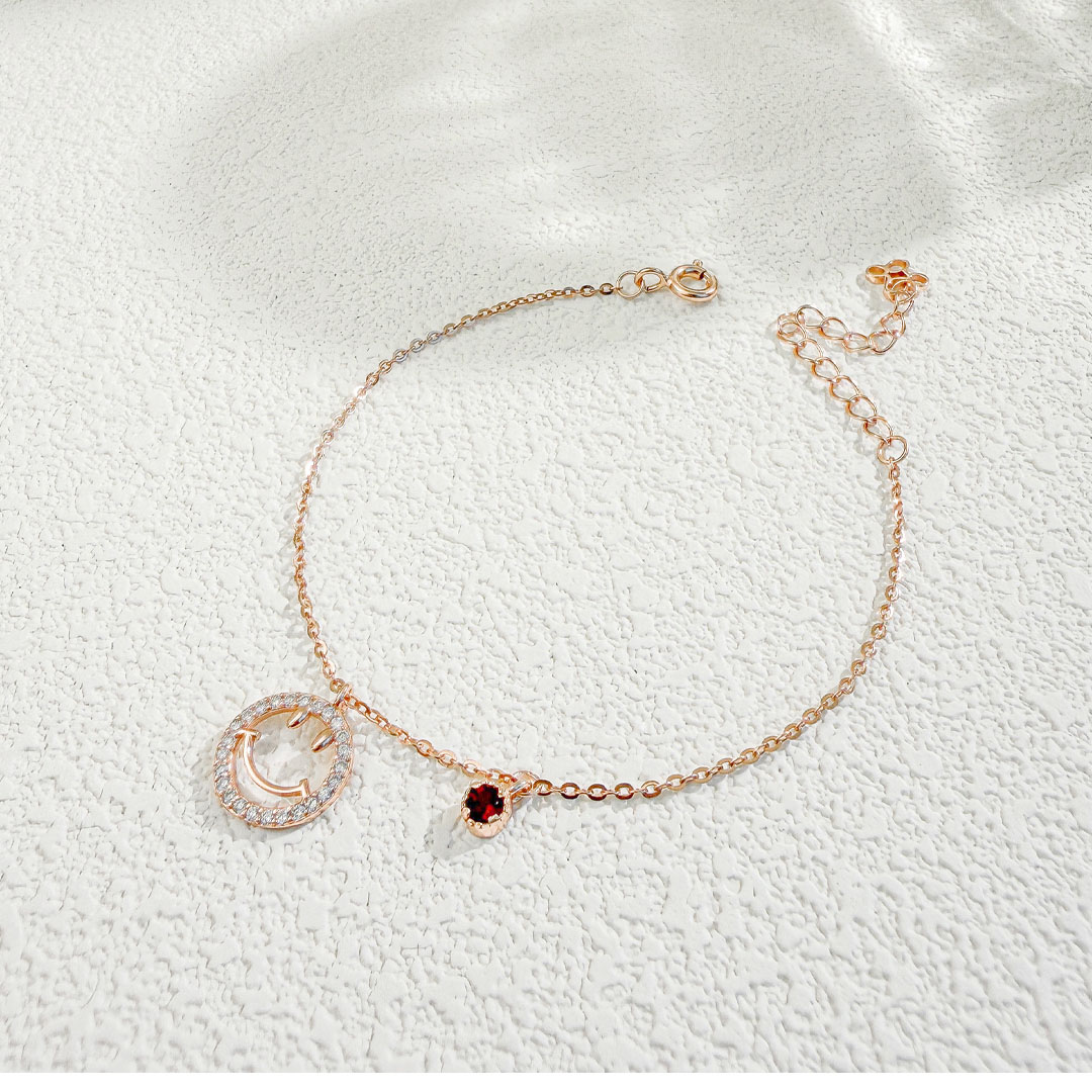 天然石│石榴石微笑滿鑽 ‧ 純銀手鍊