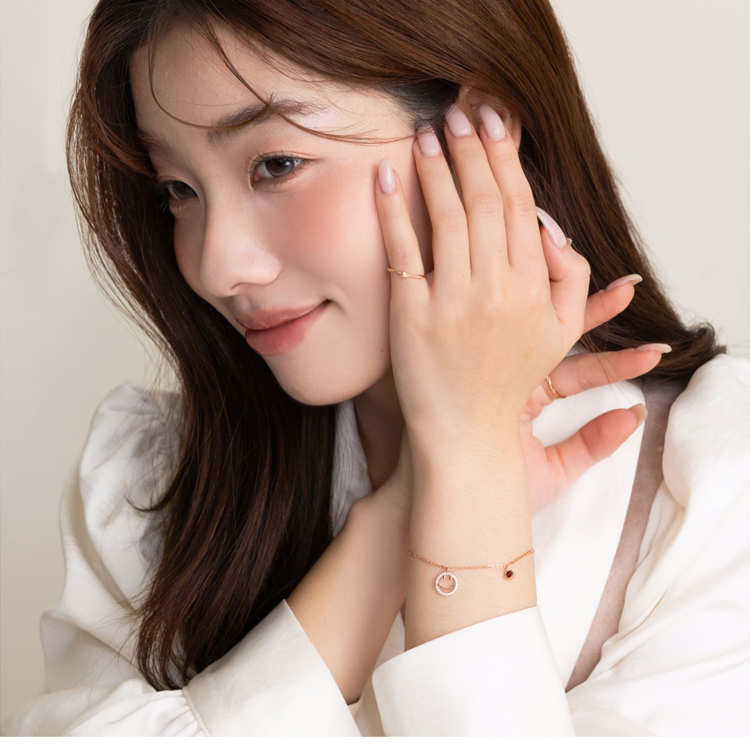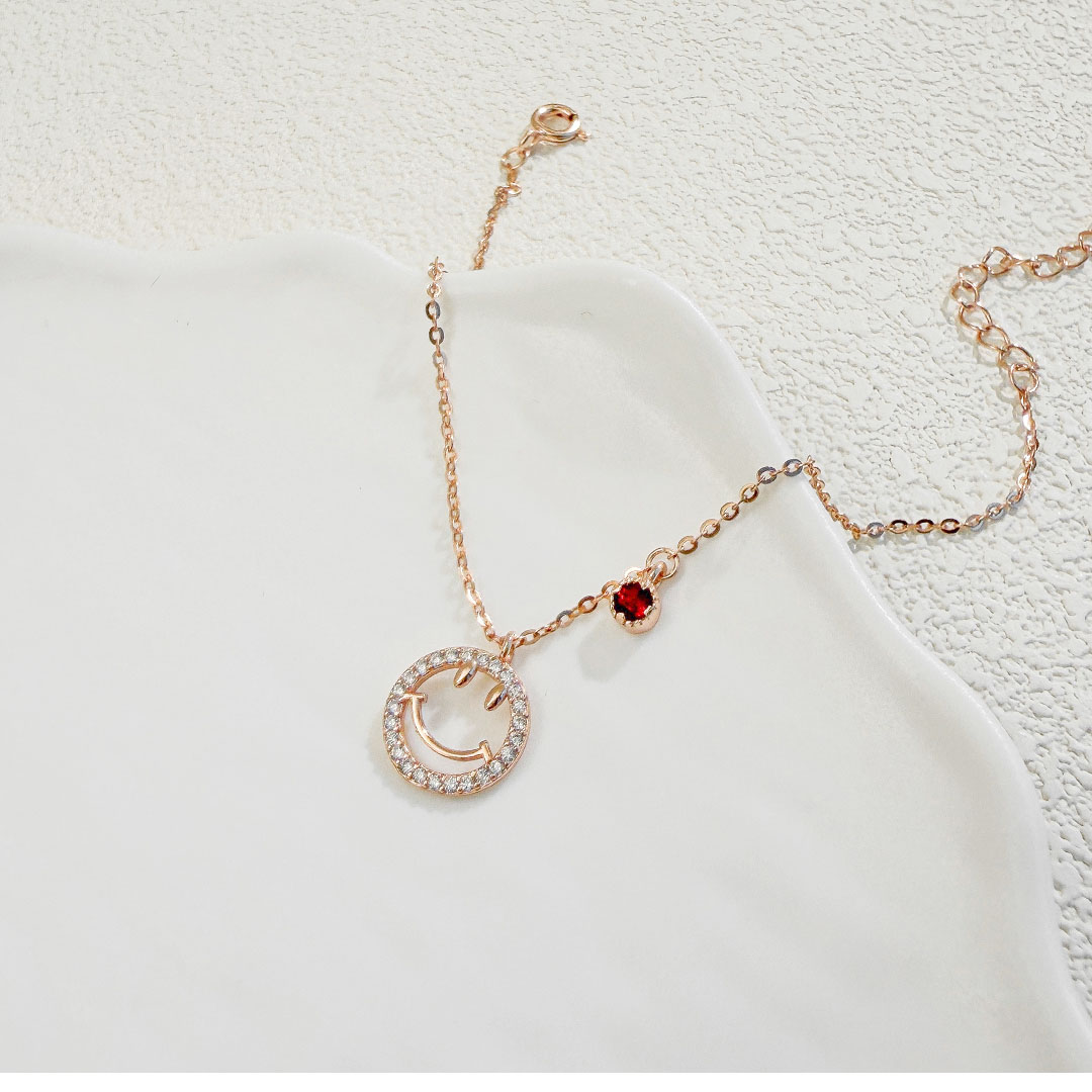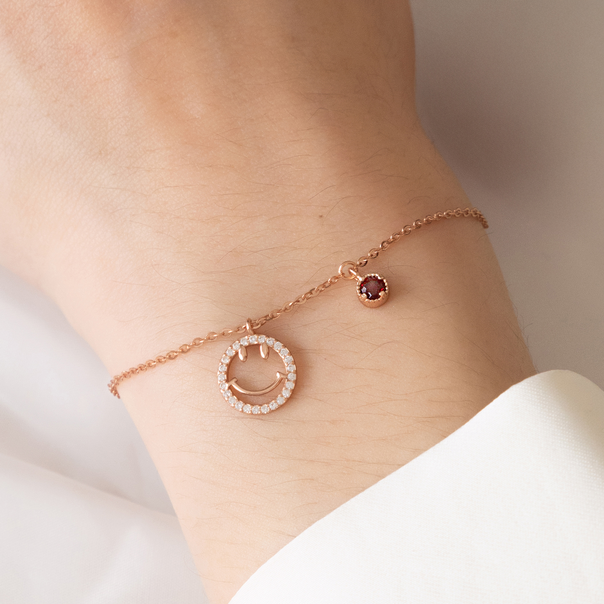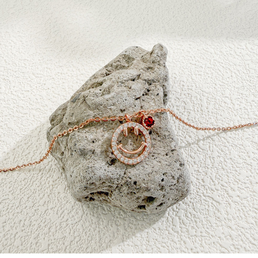 天然石│石榴石微笑滿鑽 ‧ 純銀手鍊