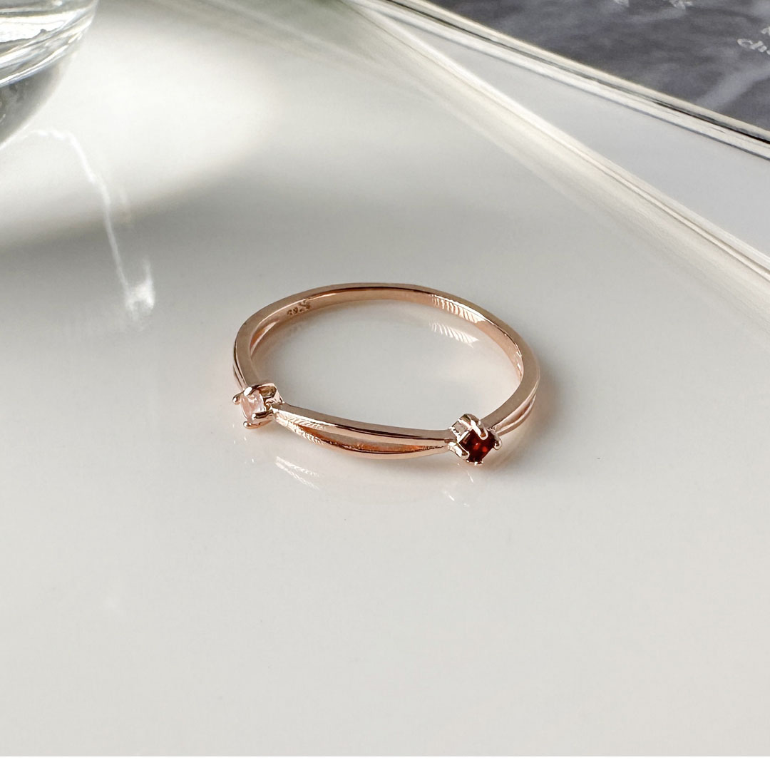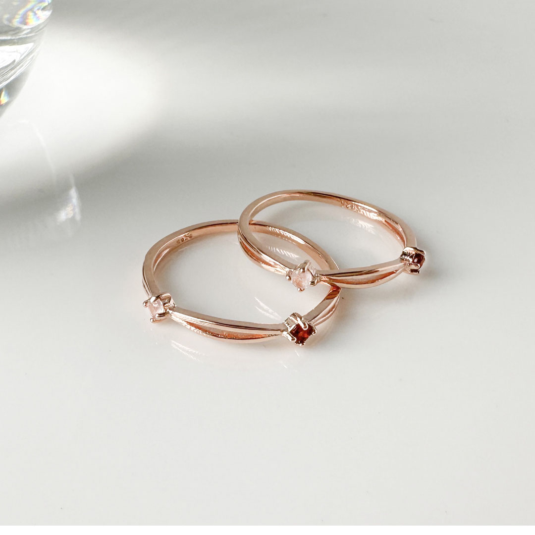加入上次未結帳之商品 × 天然石│石榴石 ‧ 粉水晶│交織鏤空 ‧ 純銀戒指