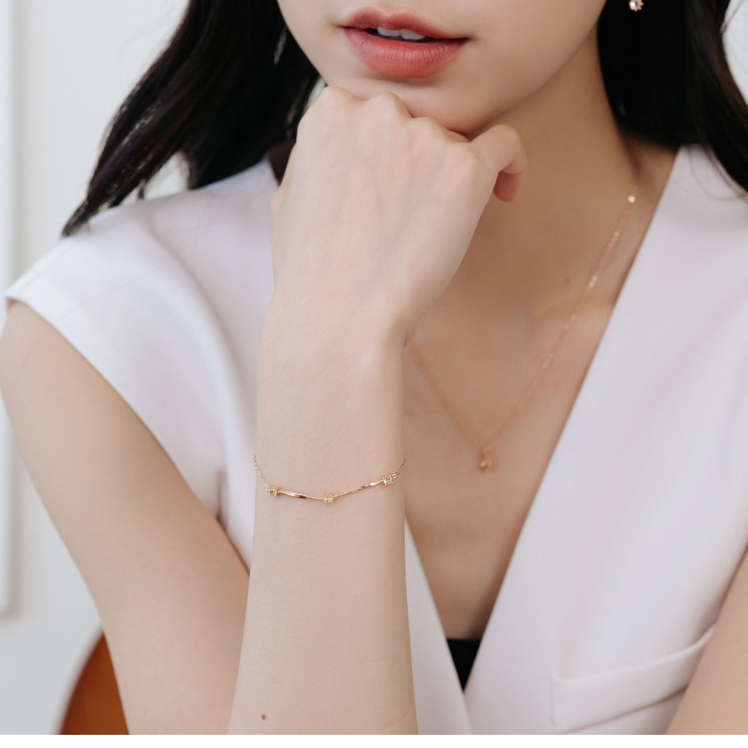 優美的曲線蘊含著精美工藝,璀璨水晶點亮了優雅的輪廓,環繞於腕間輕輕訴說著溫柔與堅韌。