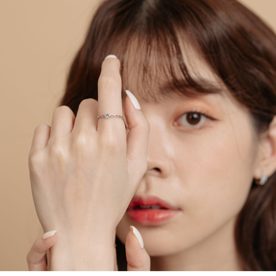本系列商品採用天然瑞士藍托帕石 2.5 mm