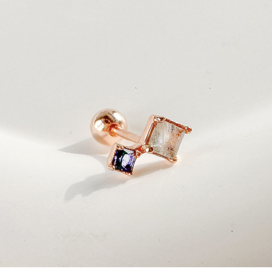 天然石│堇青石 ‧ 拉長石│璀璨時光 ‧ 純銀耳環 (單支)