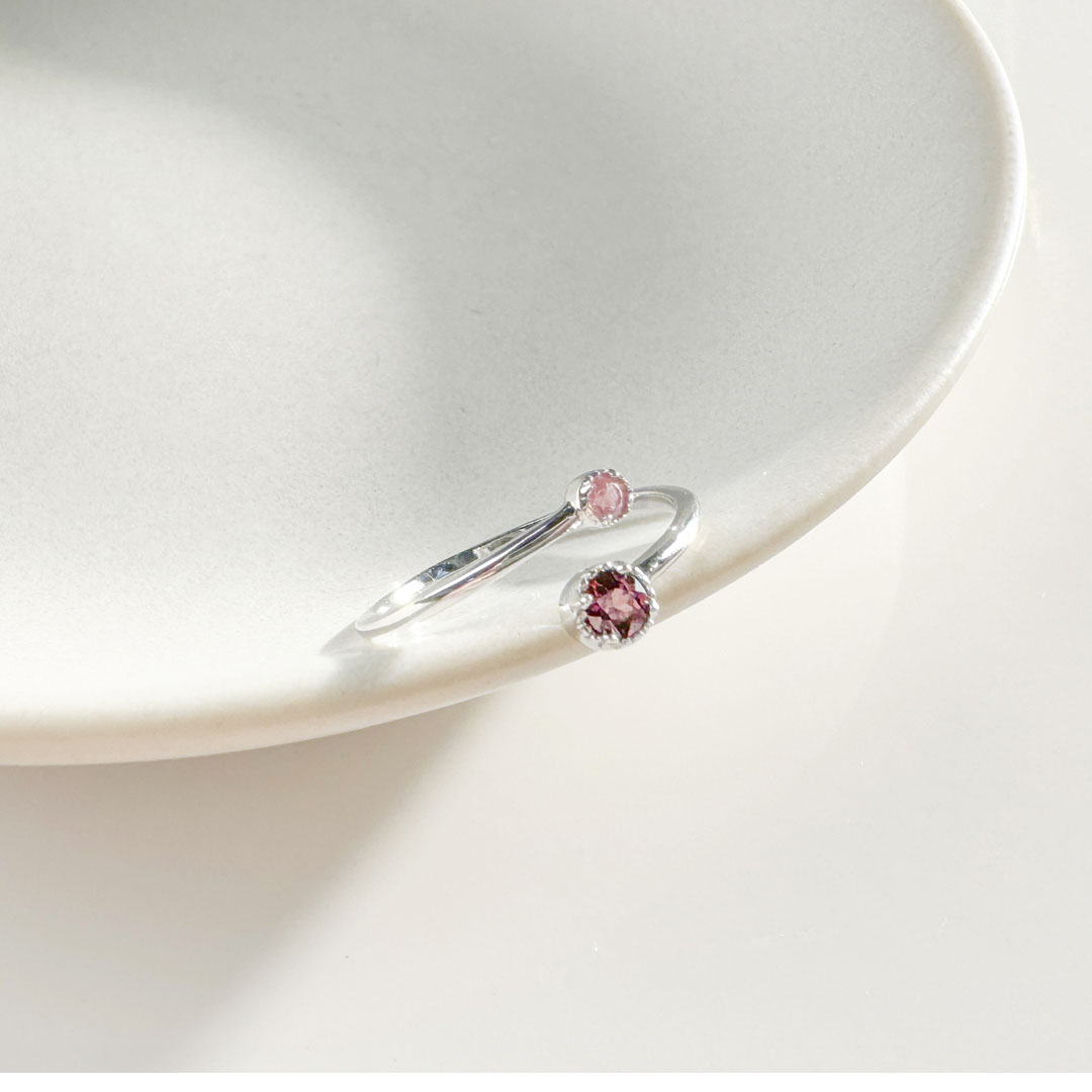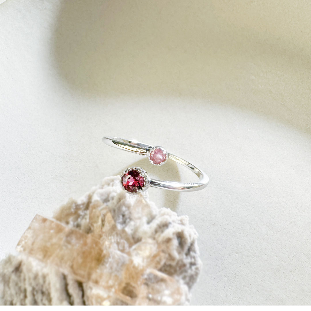 | | 天然石│粉碧璽 ‧ 黃水晶│偏愛 ‧ 純銀戒指