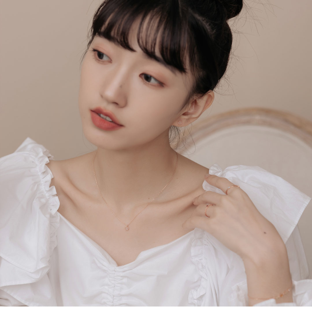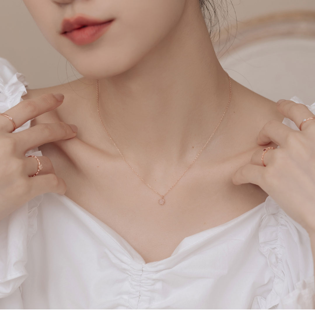 這款項鍊以精緻的銀飾鑲嵌圓潤的水晶,營造出溫柔而華麗的視覺效果,適合追求細節和品味的時尚愛好者。