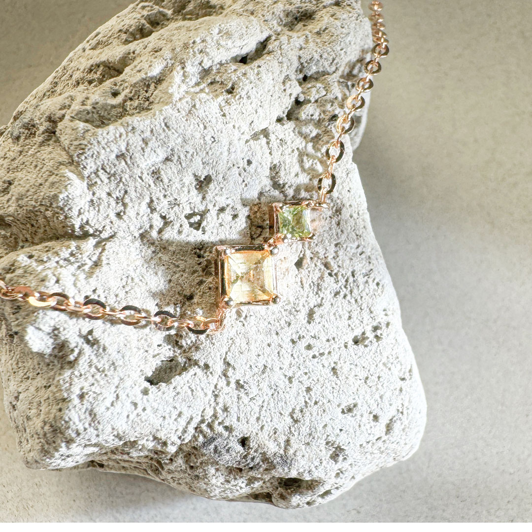 橄欖石 ( Peridot ) 被稱為「太陽的寶石」,象徵著希望和幸福,能展現自身正面的態度,使人際關係良好,情侶間感情甜蜜。