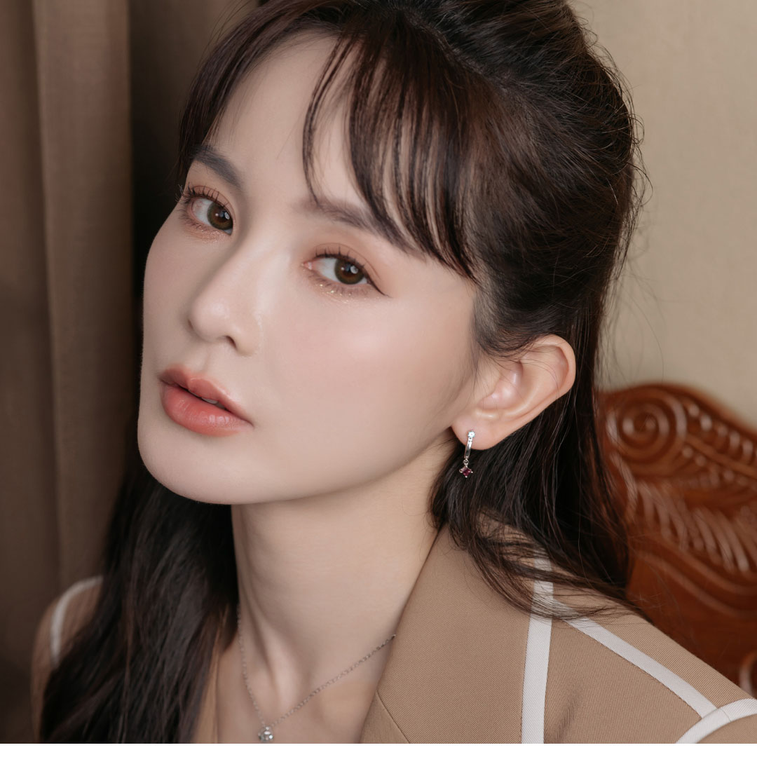 這對精緻的純銀耳環,鑲嵌兩種水晶增添了視覺層次,以經典的吊墜式設計融合現代感,是每位愛美人士珠寶盒中的必備單品。