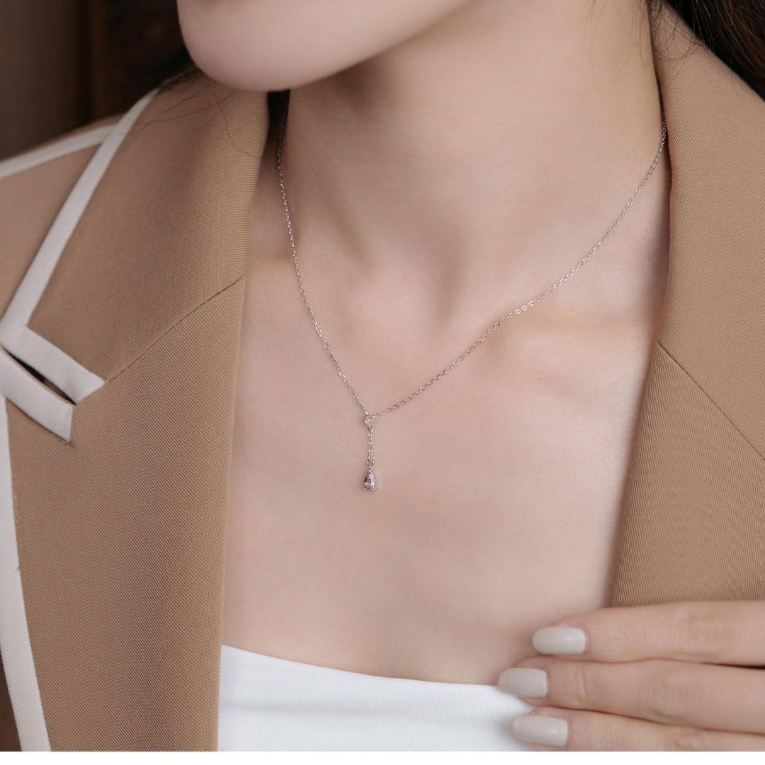 這款Y字項鍊簡約而精緻,既顯細膩又散發出柔和的光澤,優雅地點綴著佩戴者的頸間。
