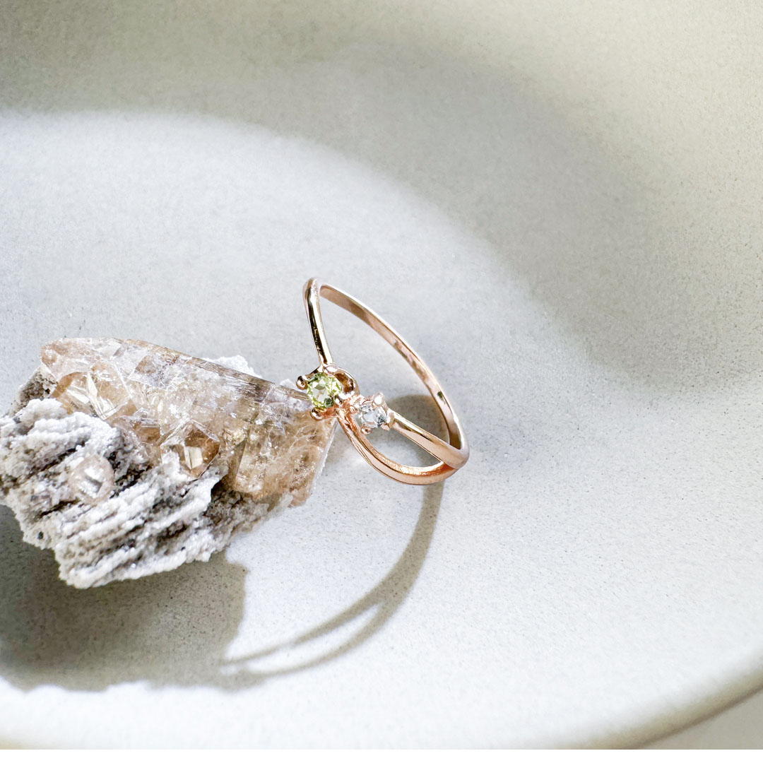 橄欖石 ( Peridot ) 被稱為「太陽的寶石」,象徵著希望和幸福,能展現自身正面的態度,使人際關係良好,情侶間感情甜蜜。