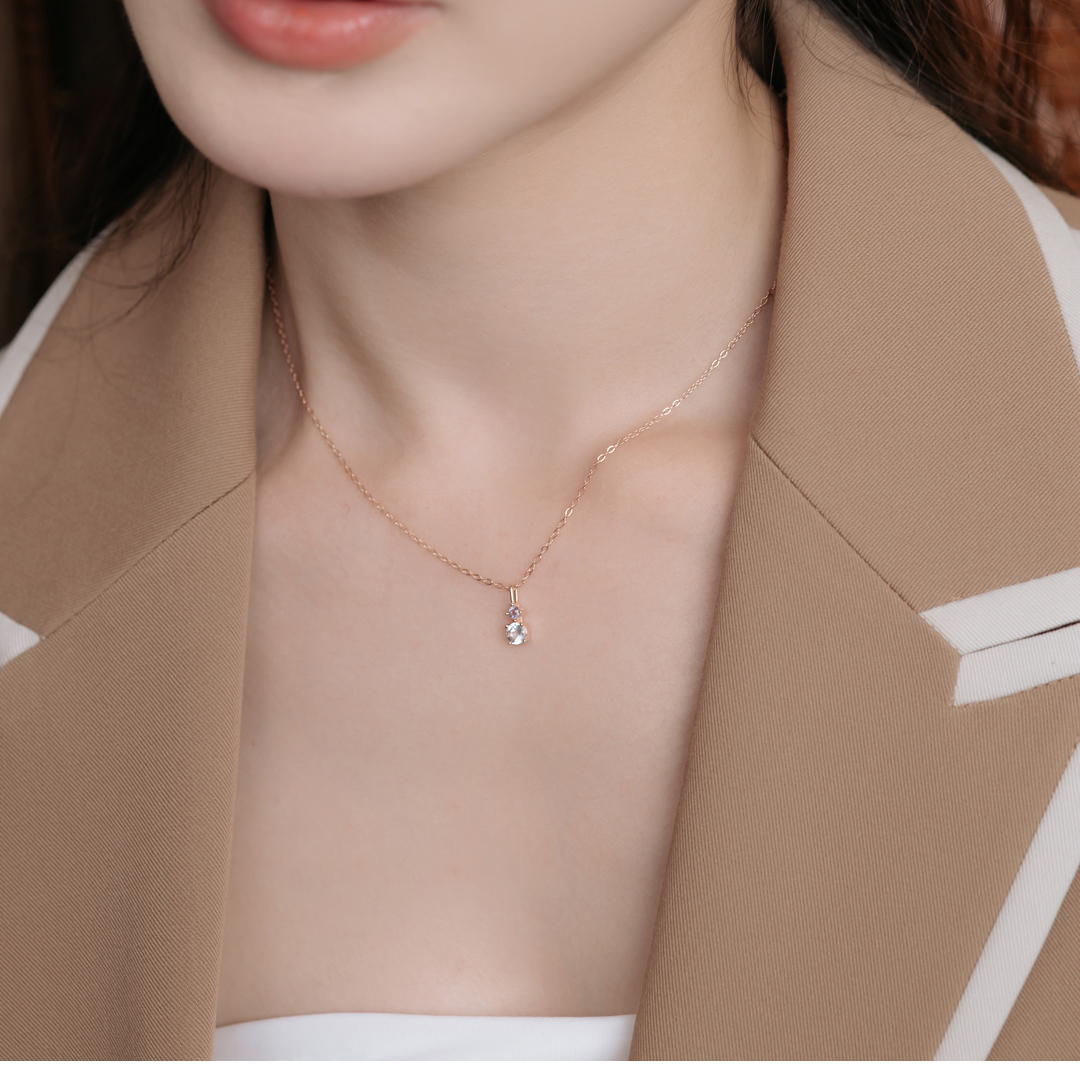 這款項鍊融合了簡約與優雅,小巧精緻的水晶映射出璀璨的光芒,非常適合追求細膩生活品質的你。