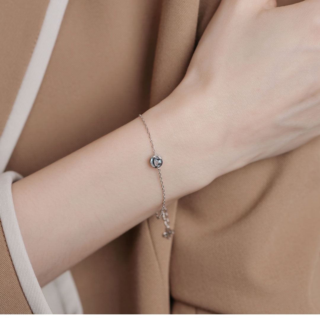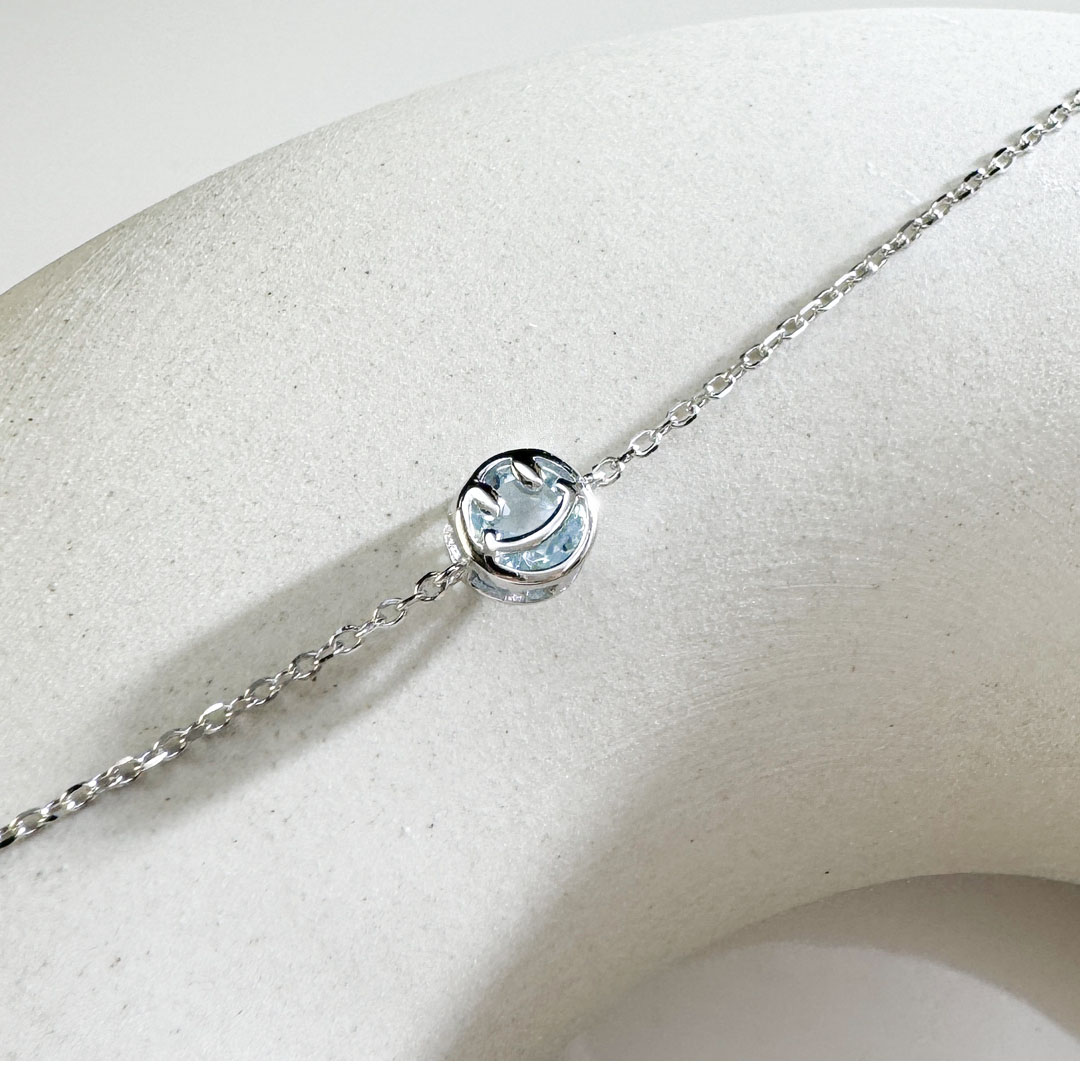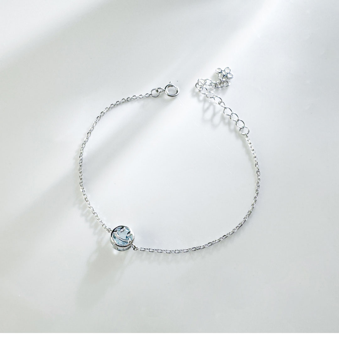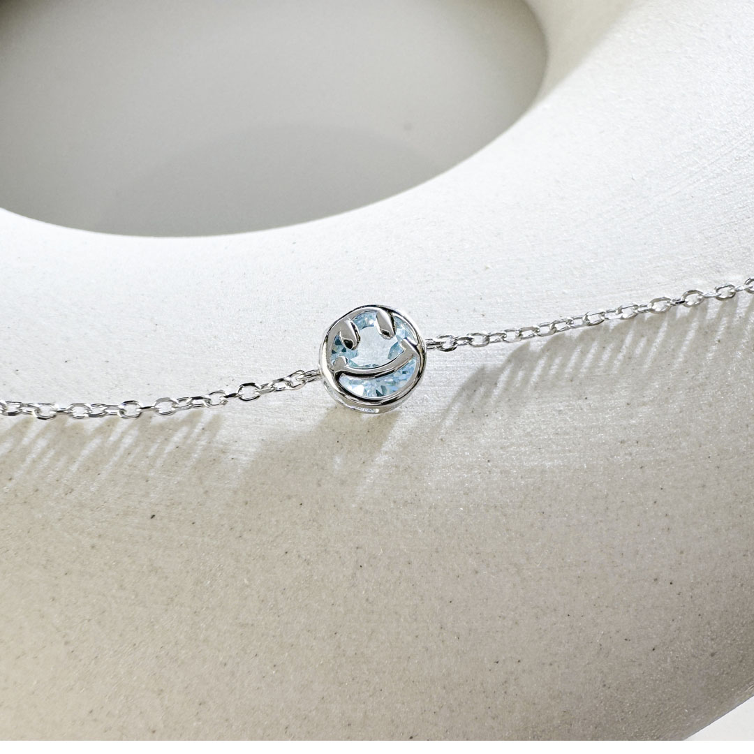 這款純銀手鍊以微笑為主題,設計簡潔和充滿喜悅感,搭配天然水晶讓人感覺充滿能量與活力。