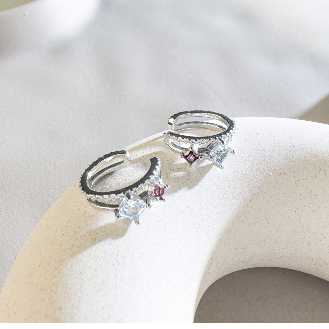 ▴ 鎂石榴石 2 mm * 2 / 天空藍托帕石 3 mm * 2