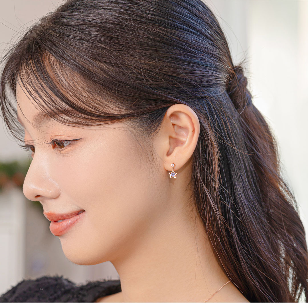 天然石│白水晶 ‧ 堇青石│星空舞曲 ‧ 純銀耳環