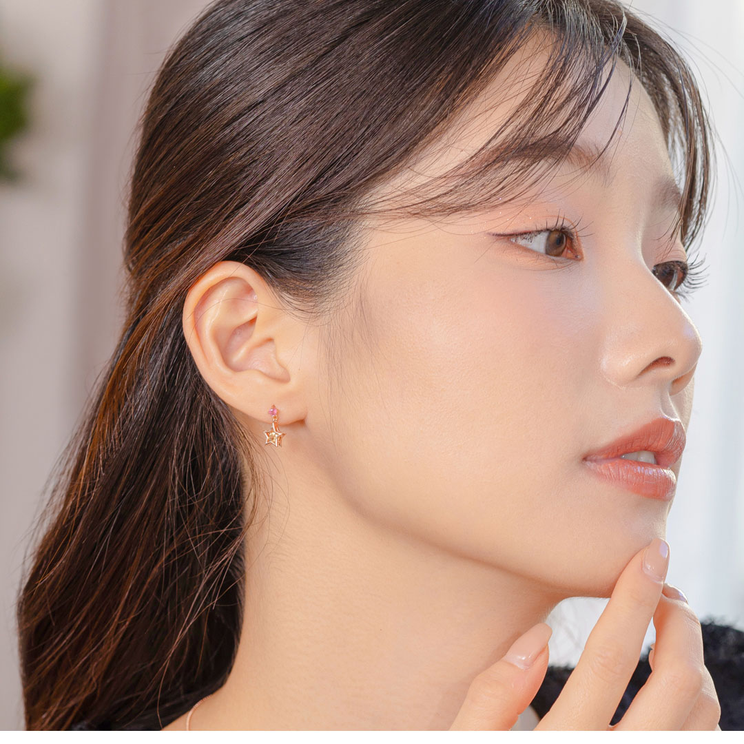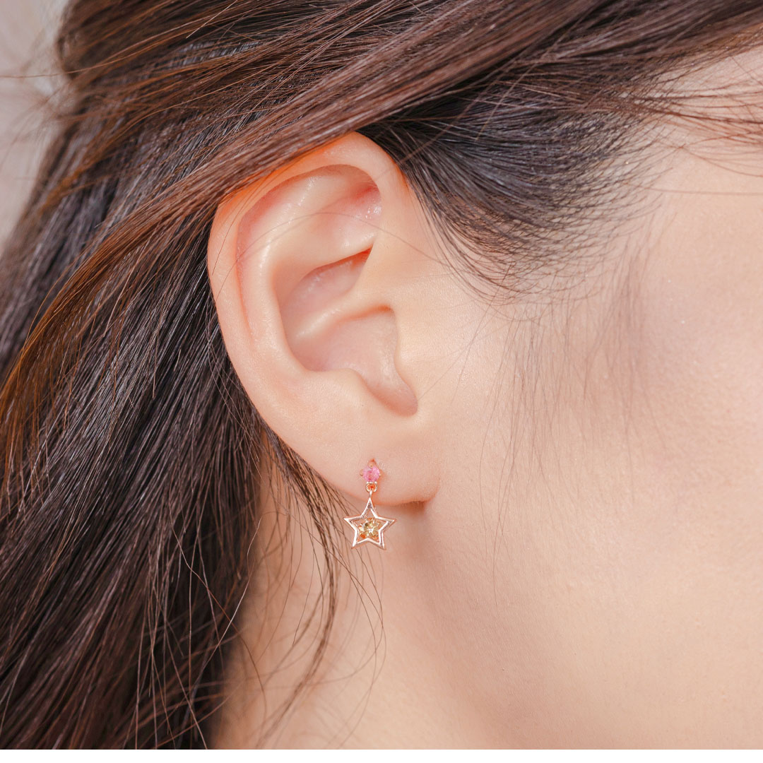 天然石│粉碧璽 ‧ 黃水晶│星空舞曲 ‧ 純銀耳環