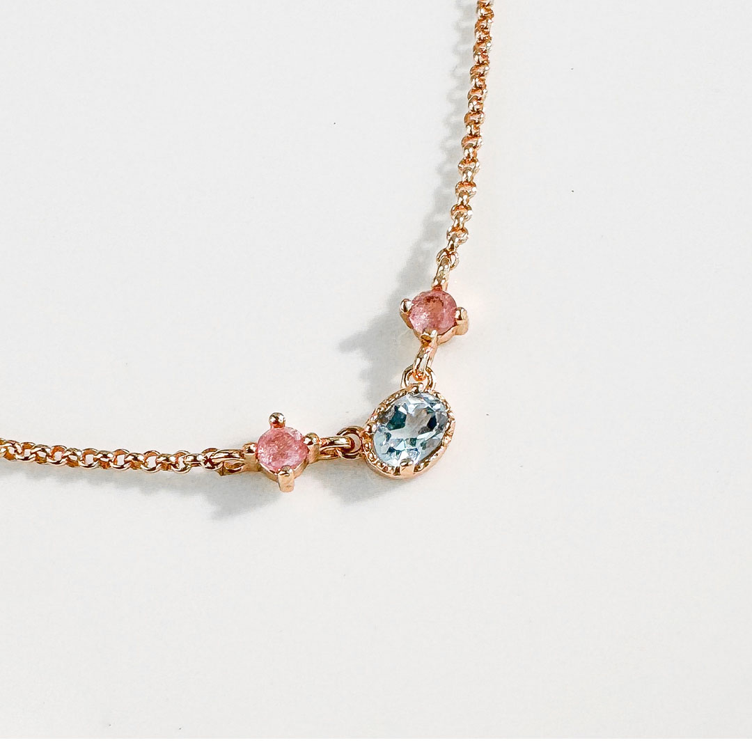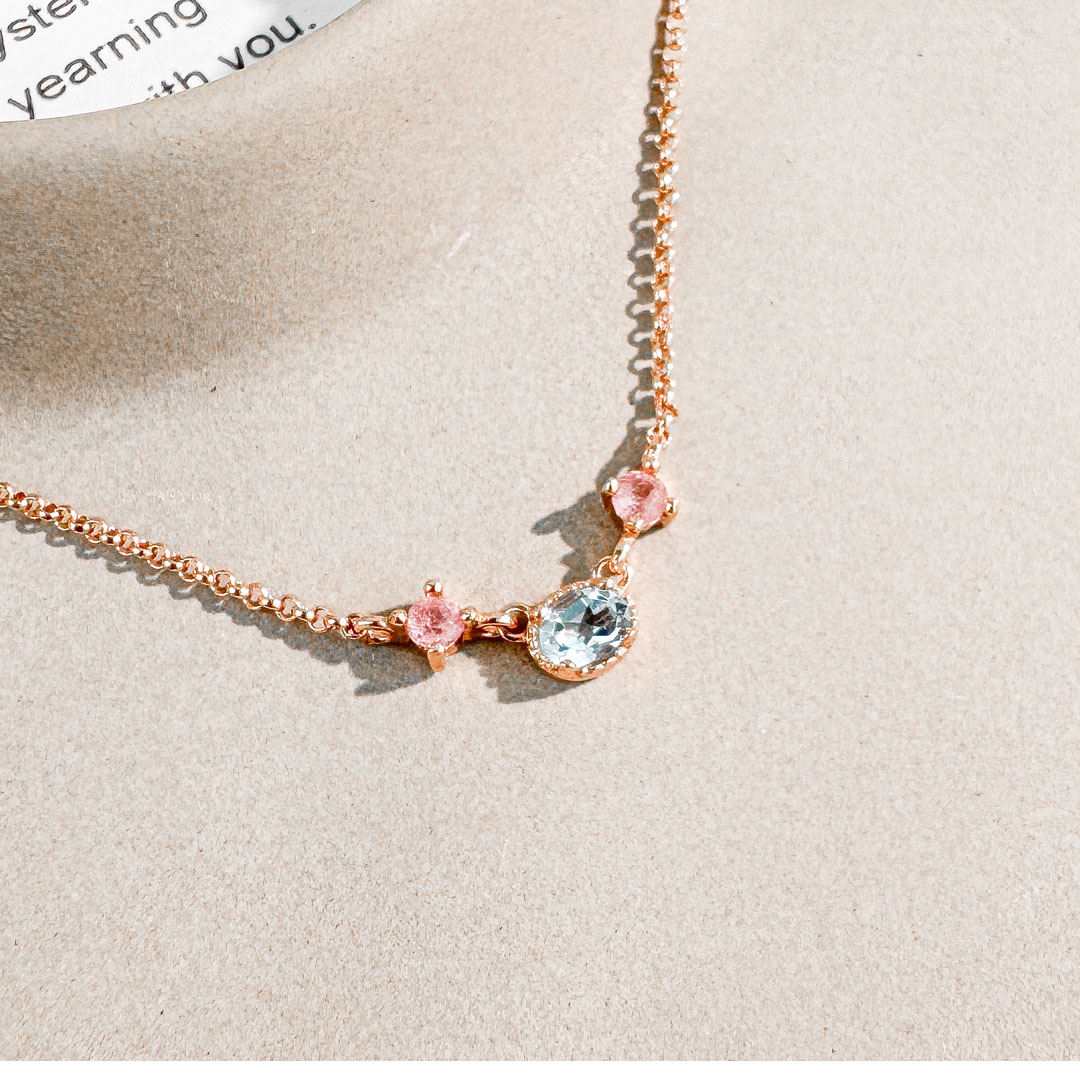 天然石│托帕石 ‧ 粉碧璽│幸福約定 ‧ 純銀項鍊