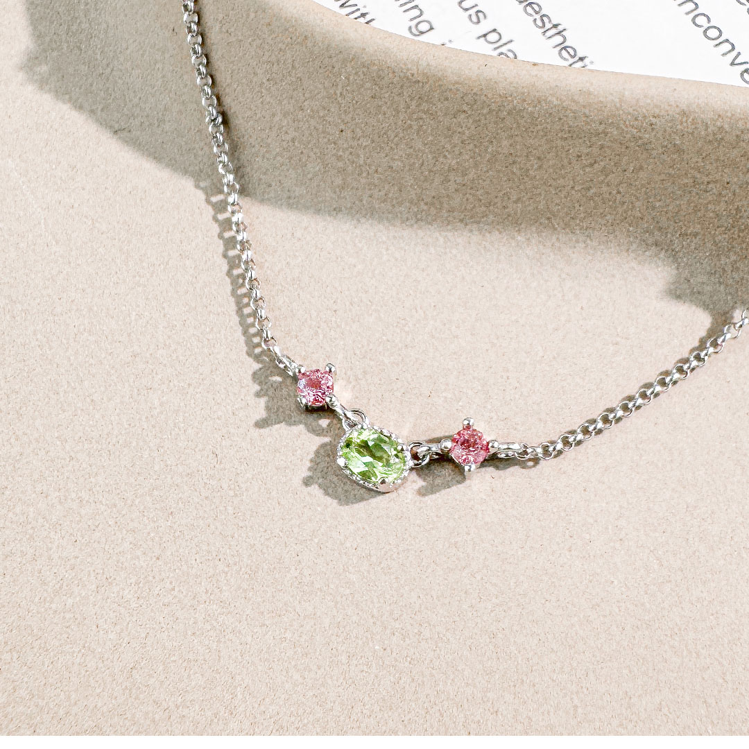 天然石│橄欖石 ‧ 粉碧璽│幸福約定 ‧ 純銀項鍊