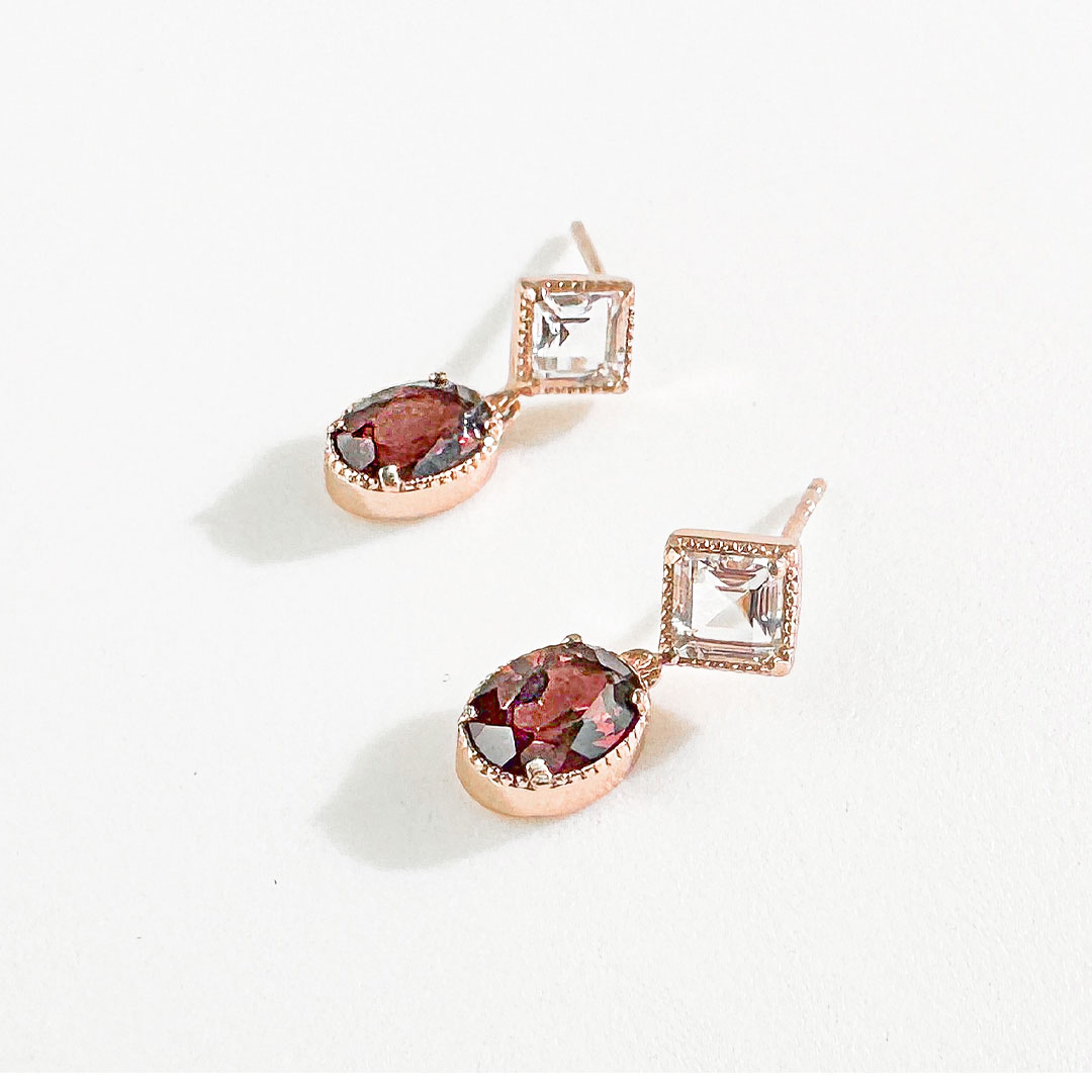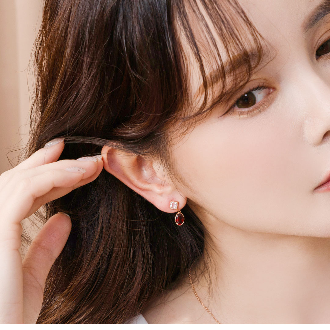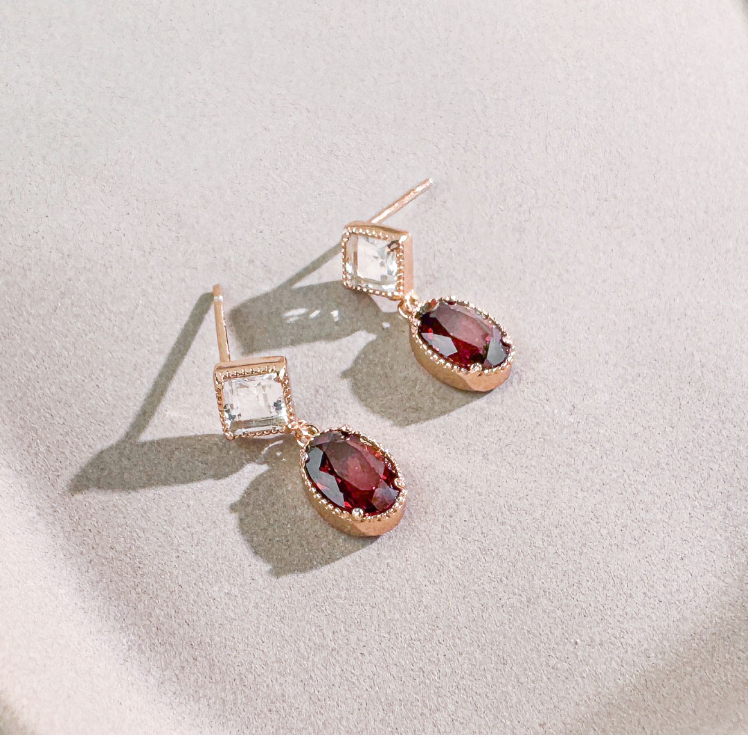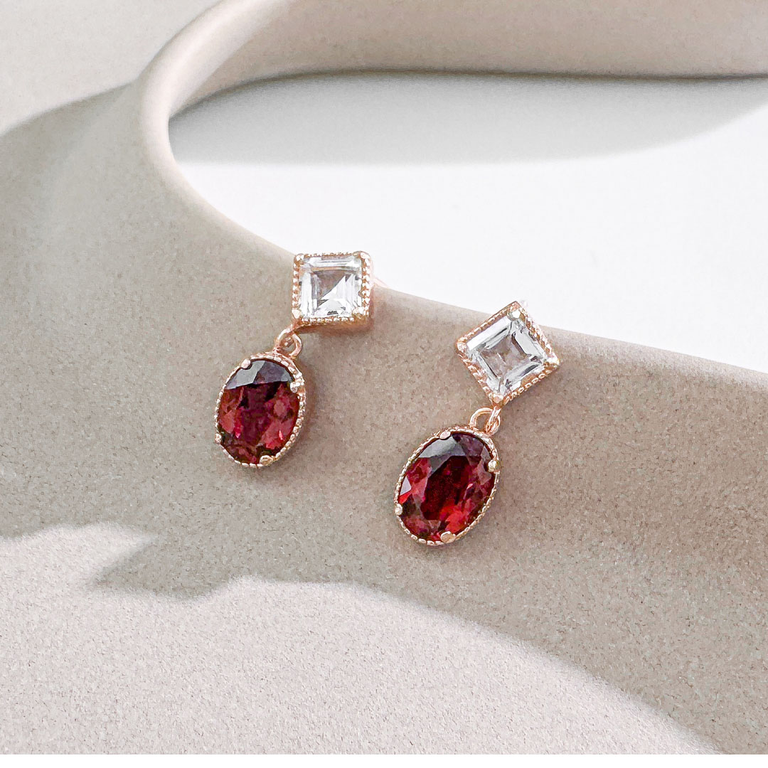 天然石│白水晶 ‧ 石榴石│時光協奏曲 ‧ 純銀耳環
