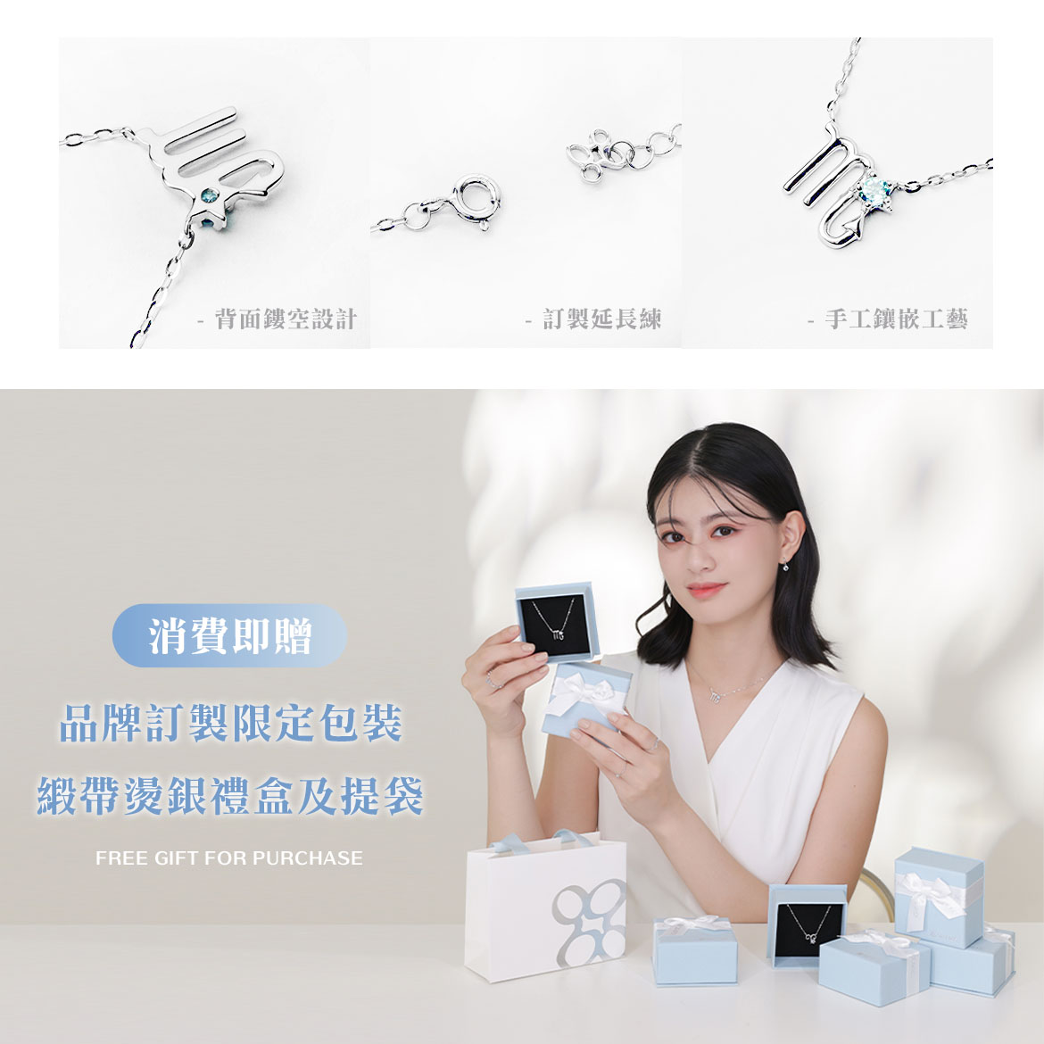 ▴ 內容 : 12星座項鍊 * 1 & 緞帶燙銀藍禮盒組 * 1
