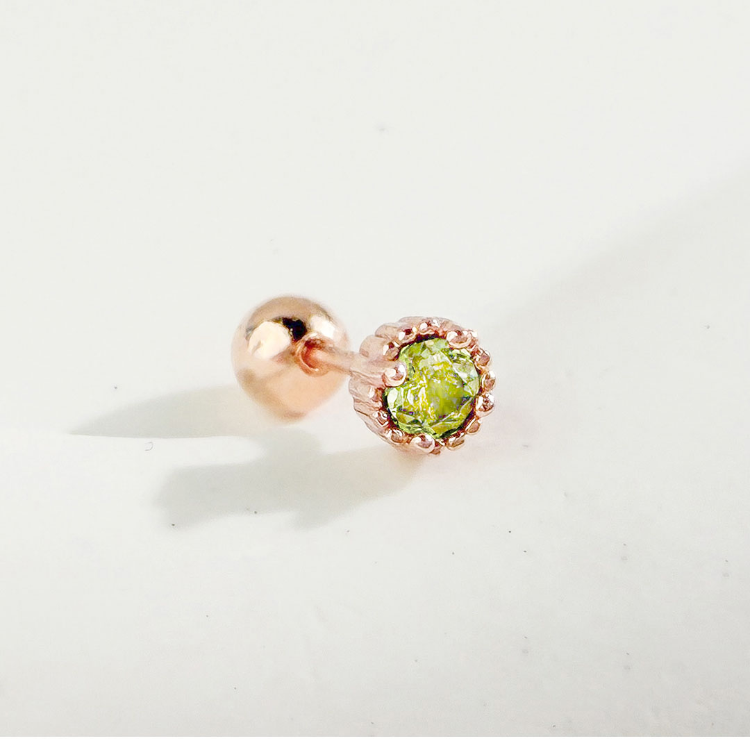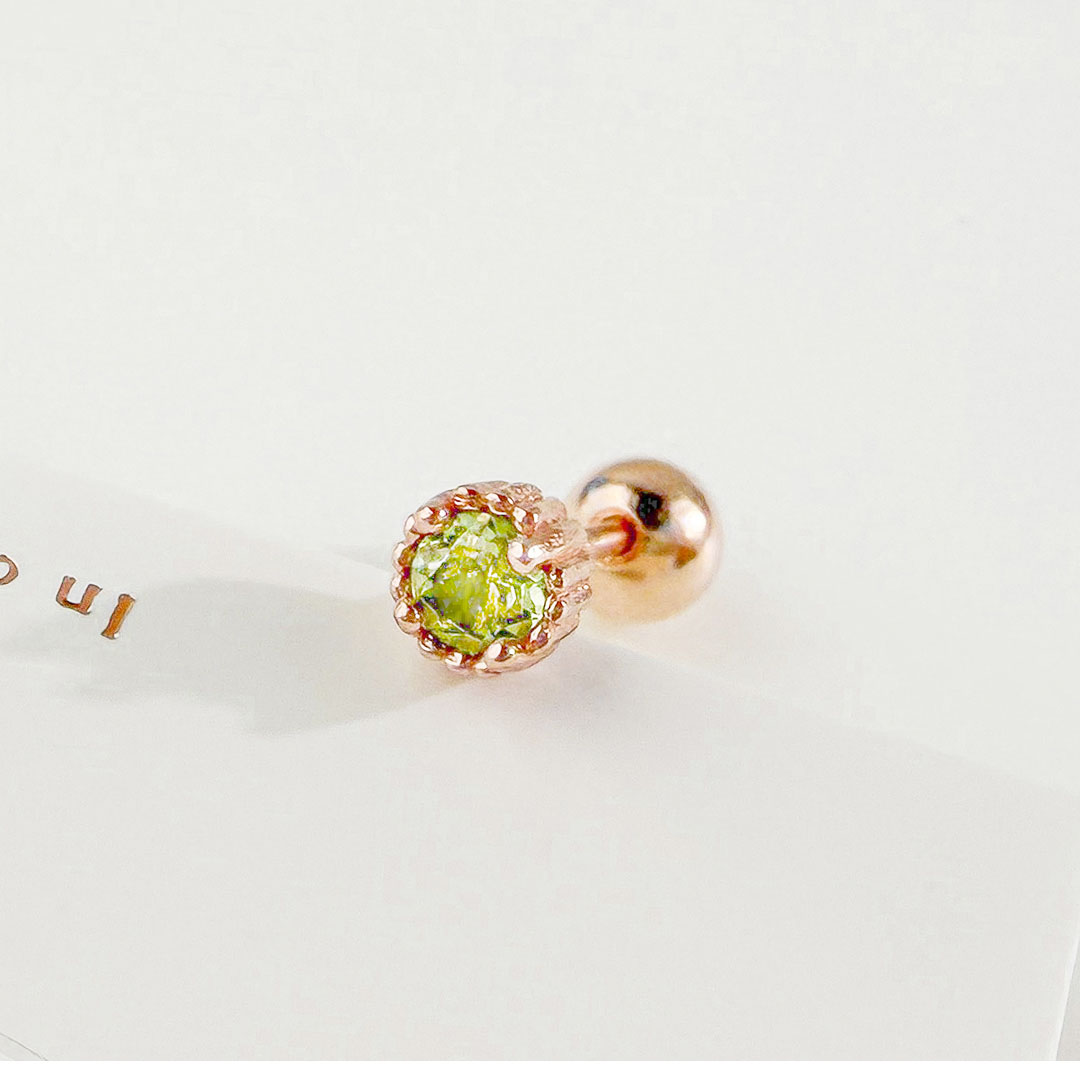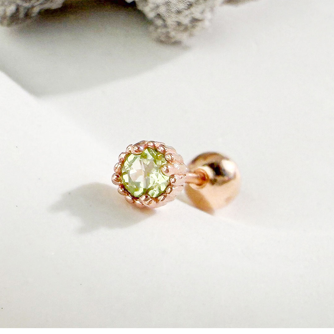 橄欖石 ( Peridot ) 被稱為「太陽的寶石」,象徵著希望和幸福,能展現自身正面的態度,使人際關係良好,情侶間感情甜蜜。
