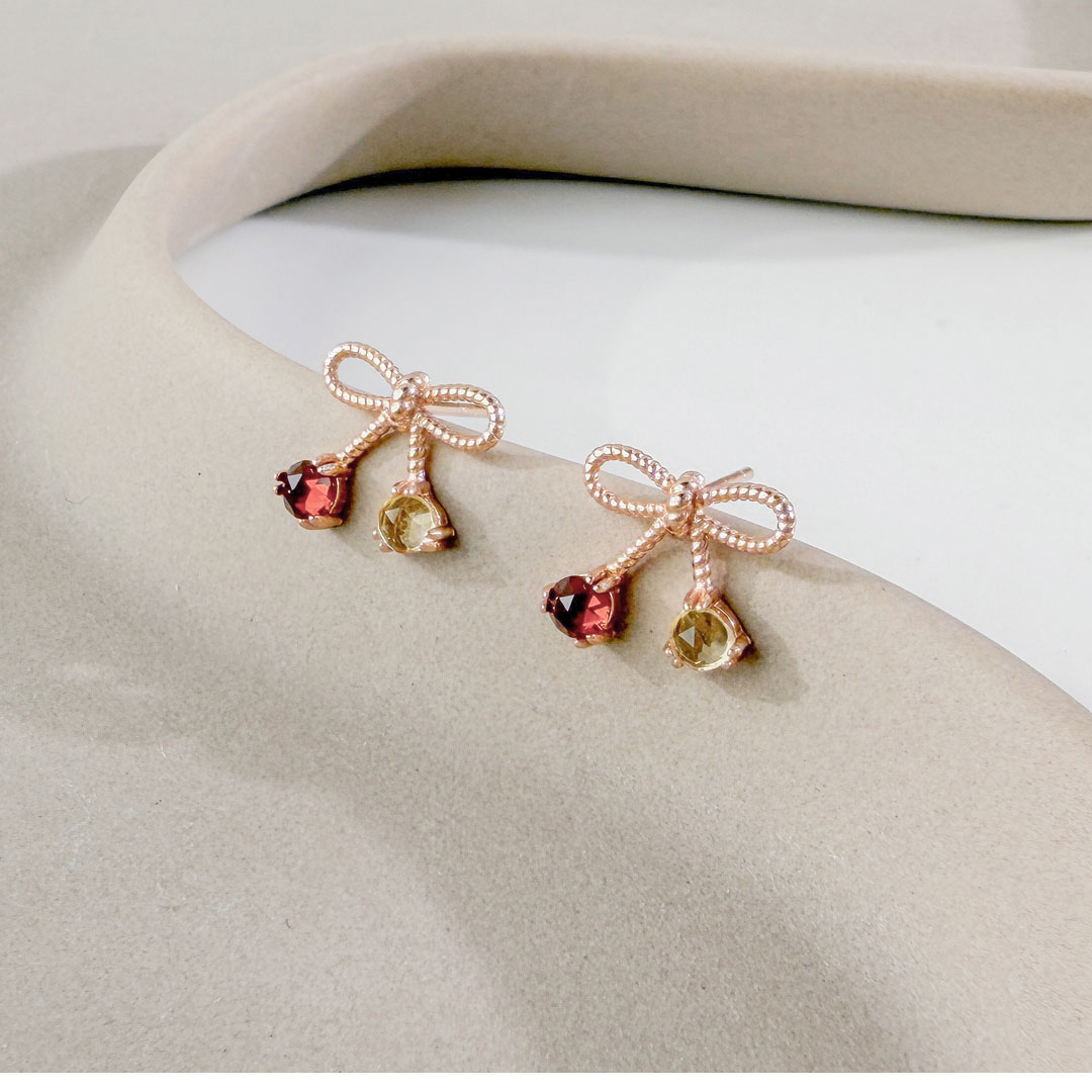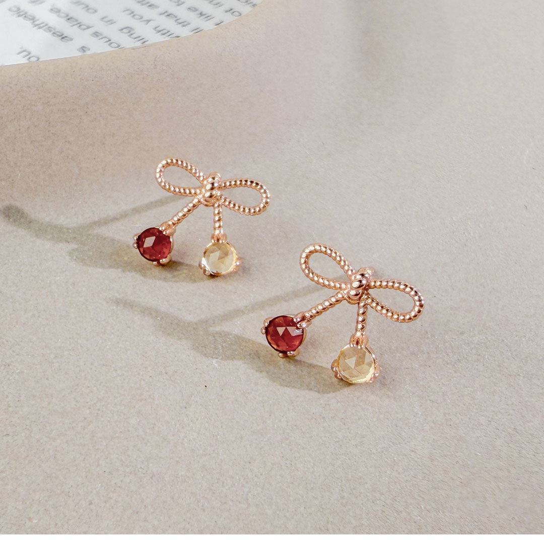 加入上次未結帳之商品 × 天然石│石榴石 ‧ 黃水晶│真愛蝴蝶結 ‧ 純銀耳環