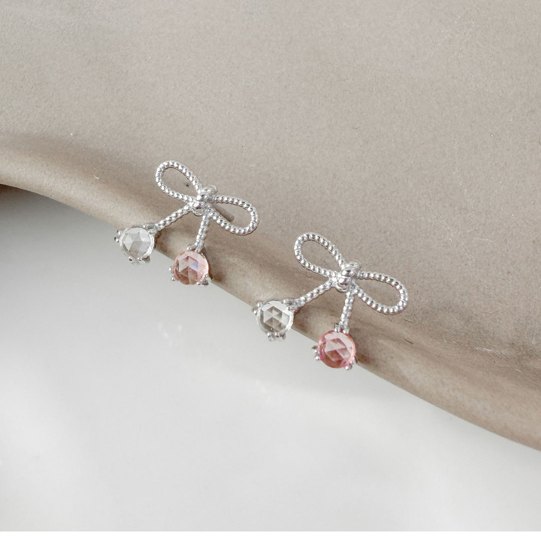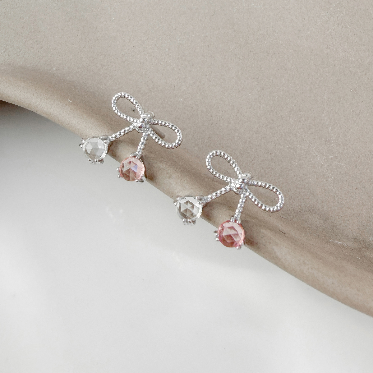 加入上次未結帳之商品 × 天然石│托帕石 ‧ 粉碧璽│真愛蝴蝶結 ‧ 純銀耳環