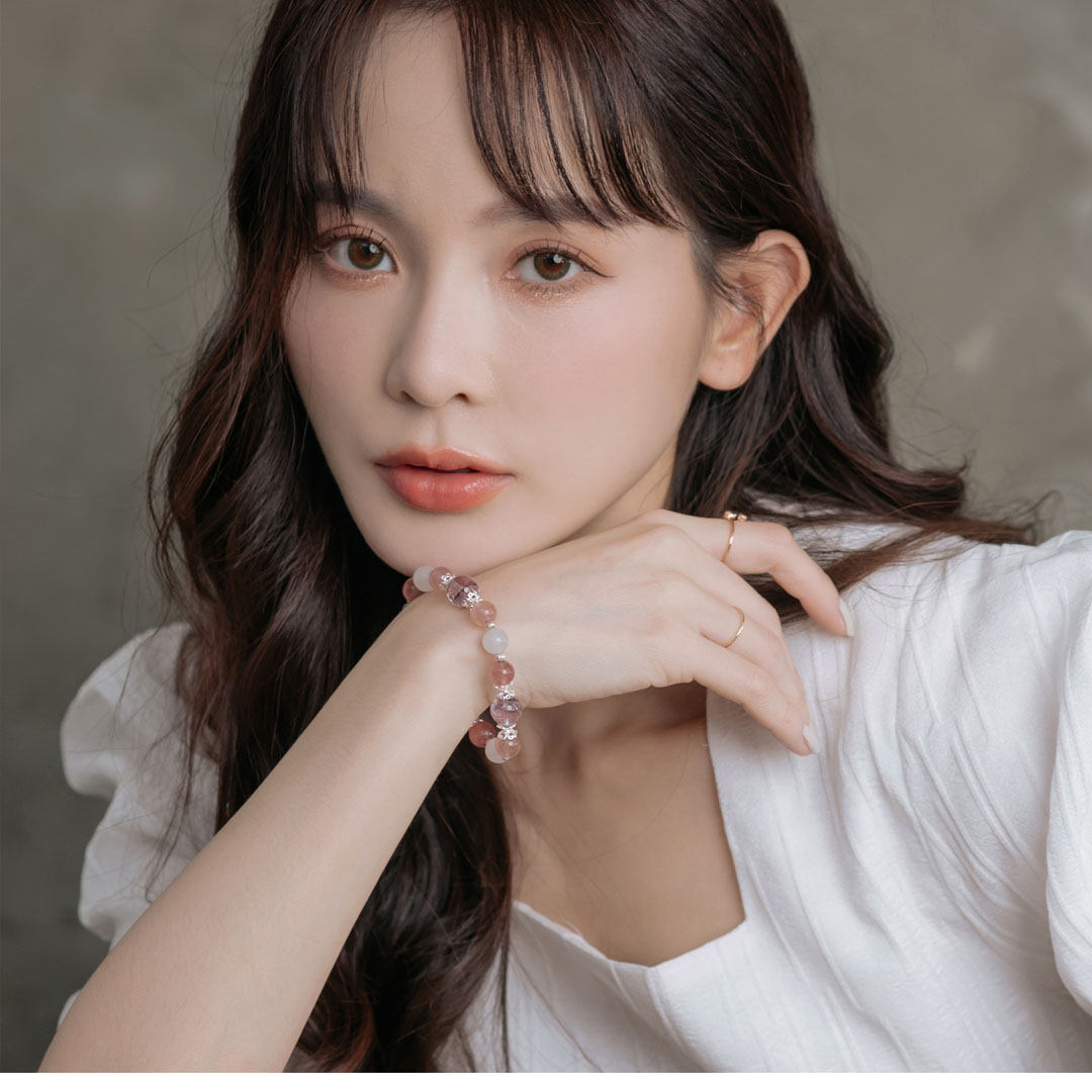 草莓晶 ( Strawberry Quartz ) 被認為是知性與愛情的魔法師,穿戴美麗的草莓晶可以增加魅力和桃花 。