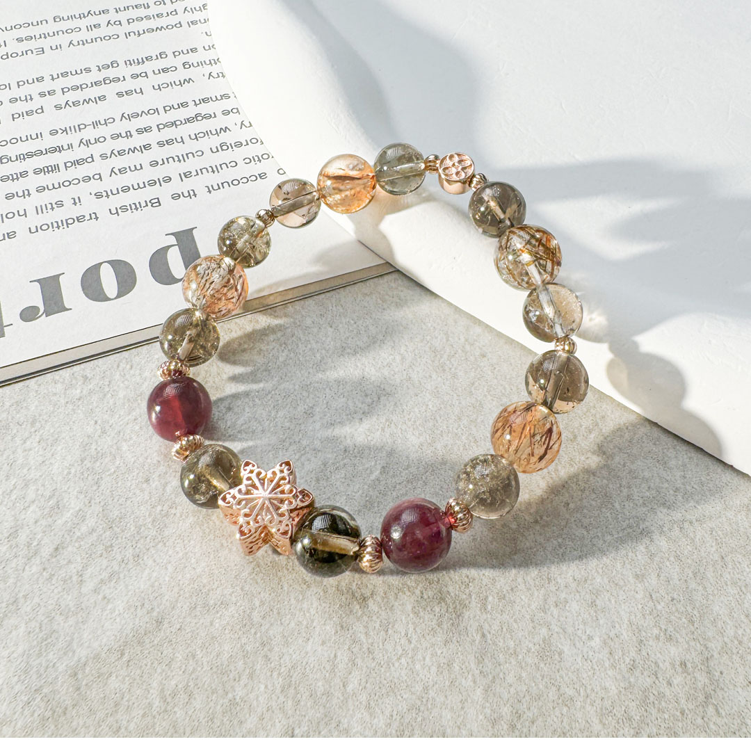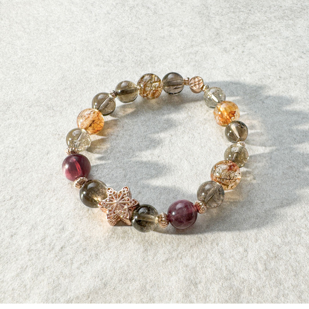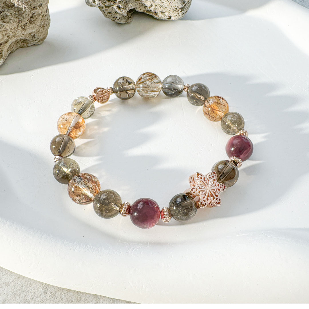 天然石│茶水晶 ‧ 紫鋰雲母 ‧ 黑金超七│富貴榮華 ‧ 水晶手串