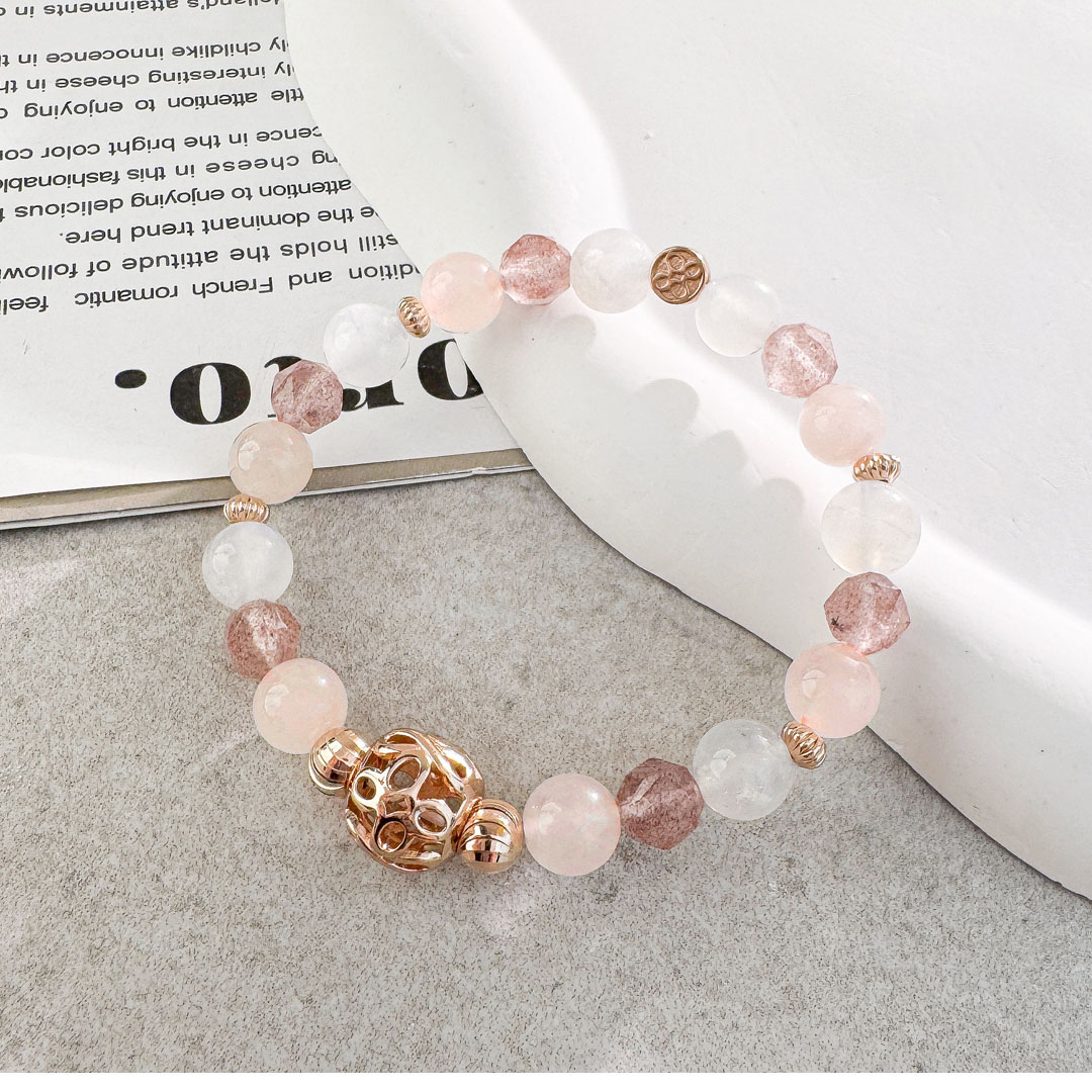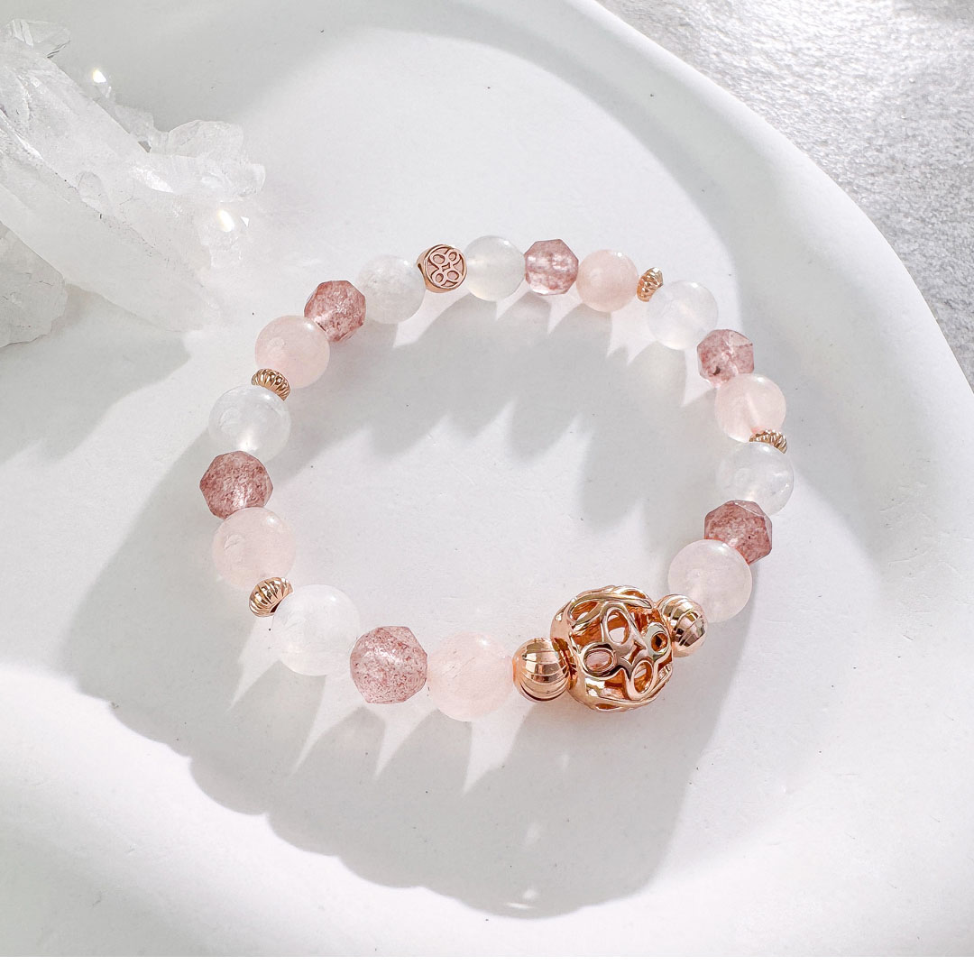 草莓晶 ( Strawberry Quartz ) 被認為是知性與愛情的魔法師,穿戴美麗的草莓晶可以增加魅力和桃花 。