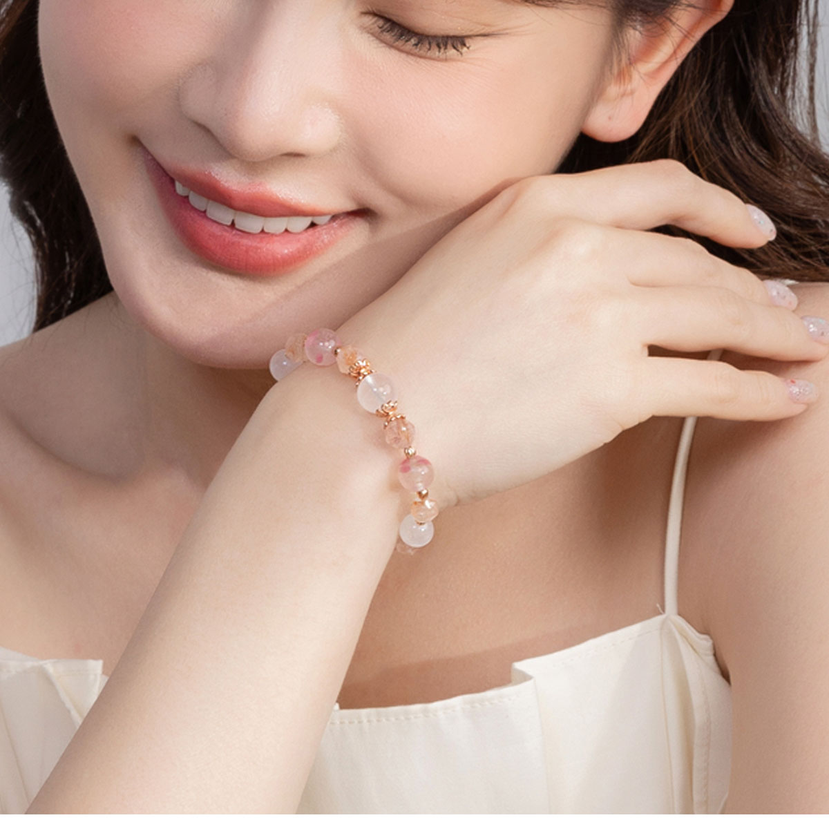 紅膠花水晶的內部有形如花瓣般的共生礦物,被認為能增加魅力,從而招來貴人和財富。