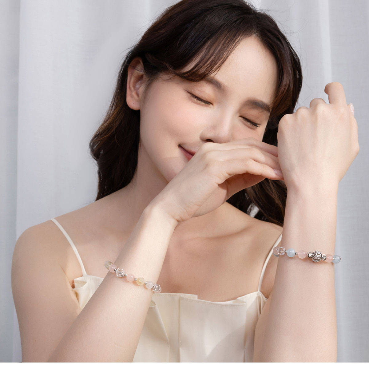 粉水晶 ( Rose Quartz ) 又稱「薔薇水晶」,是著名的愛情寶石, 當人們沉浸在粉紅泡泡中,對愛情和自身魅力都會有所提升。
