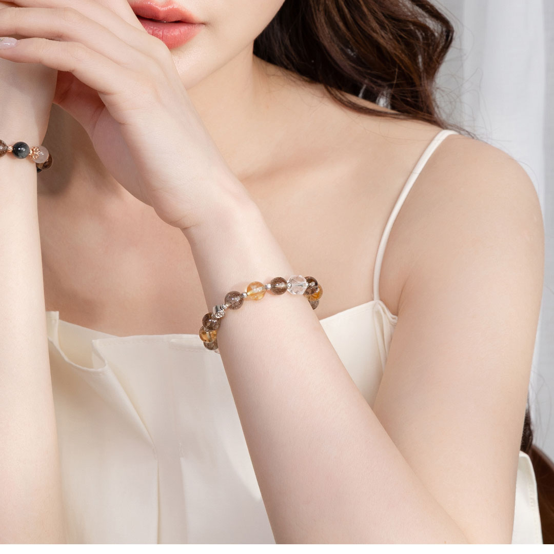 茶水晶 ( Smoky Quartz ) 又稱為煙晶,象徵財富,有著煙燻暈染的神祕色彩,讓人感覺內斂穩重。