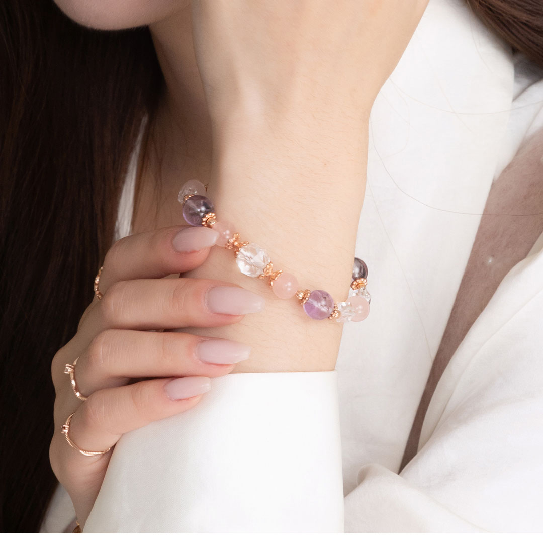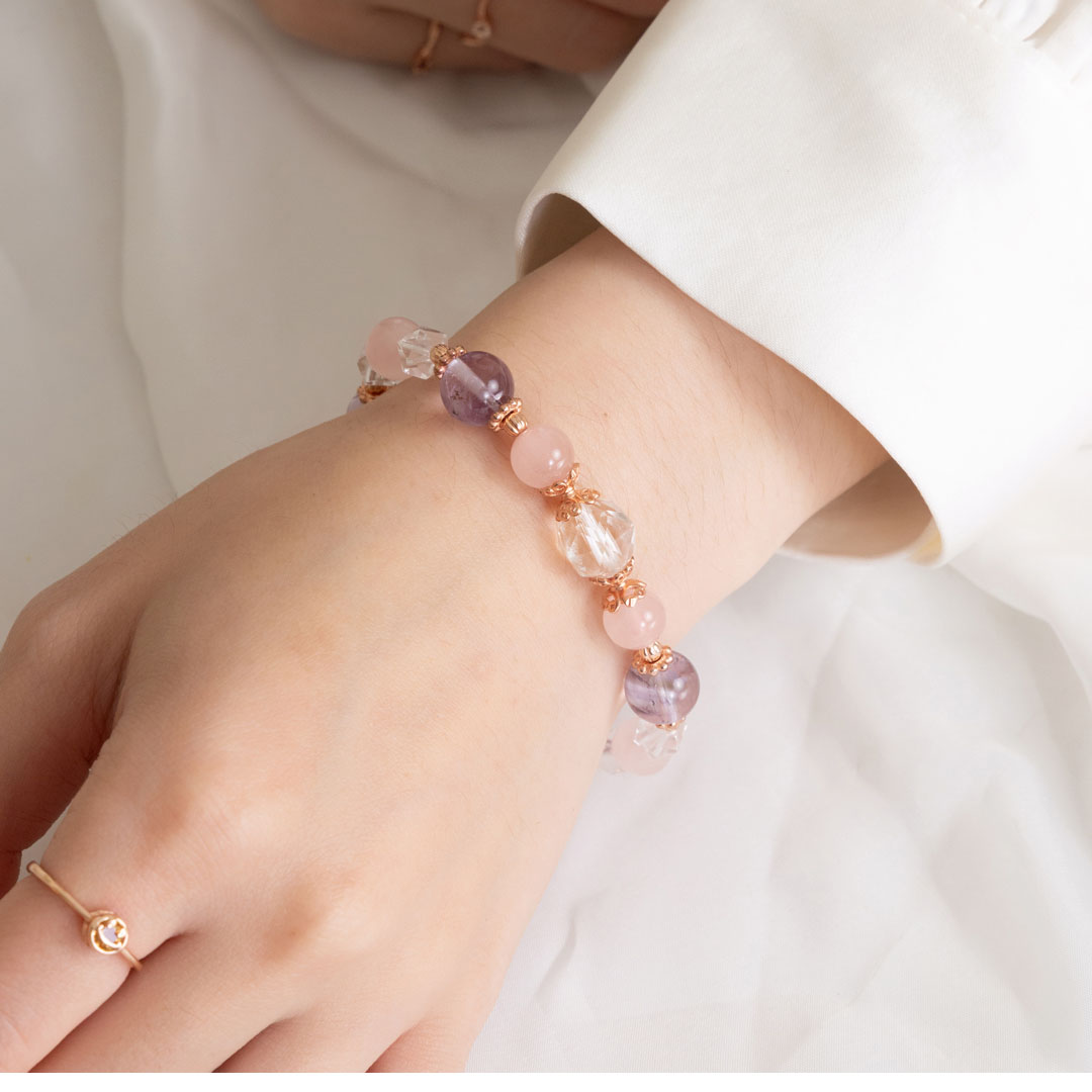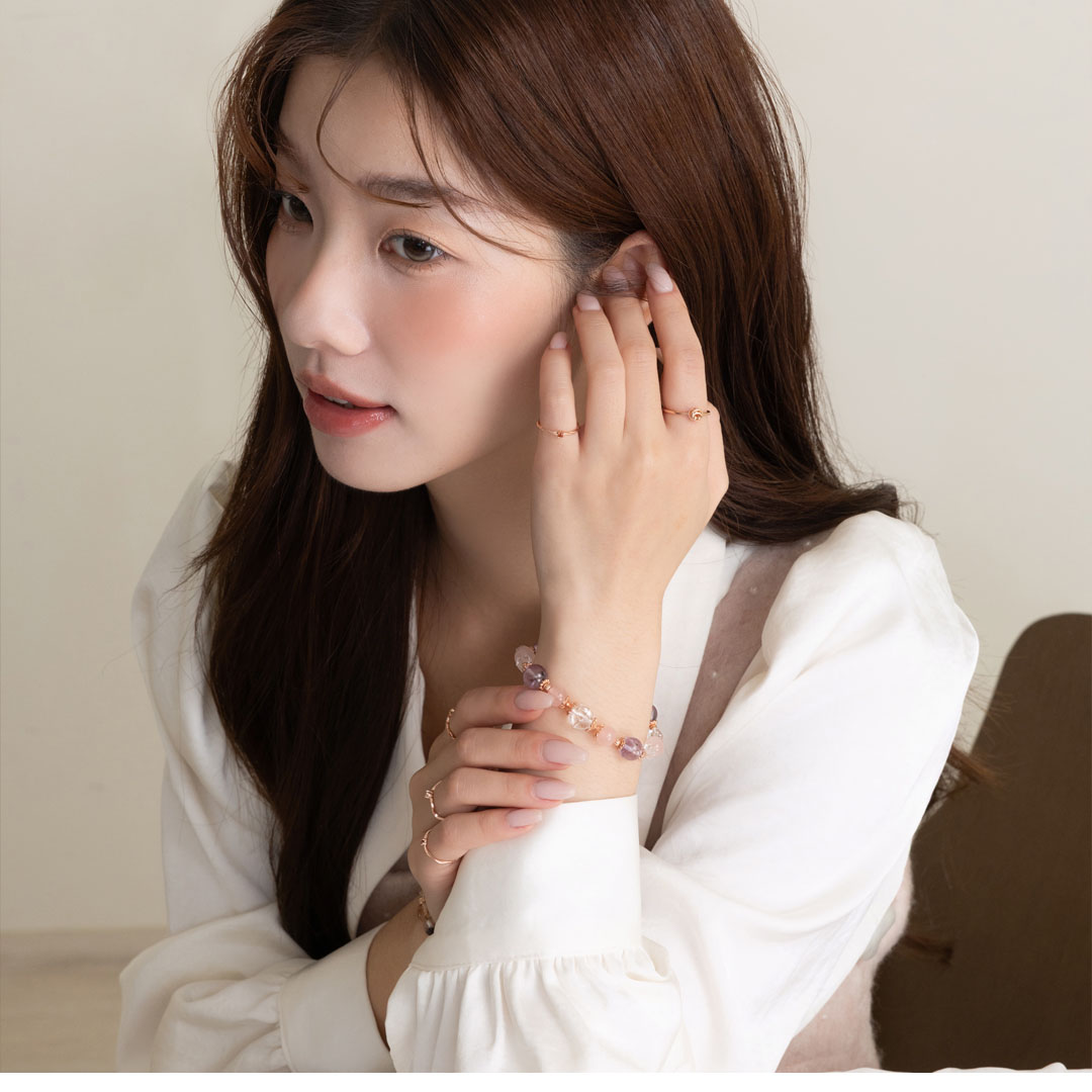 粉水晶 ( Rose Quartz ) 又稱「薔薇水晶」,是著名的愛情寶石, 當人們沉浸在粉紅泡泡中,對愛情和自身魅力都會有所提升。