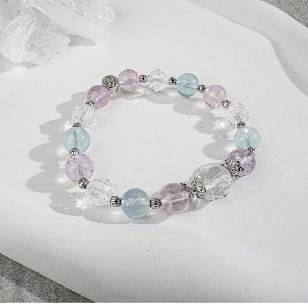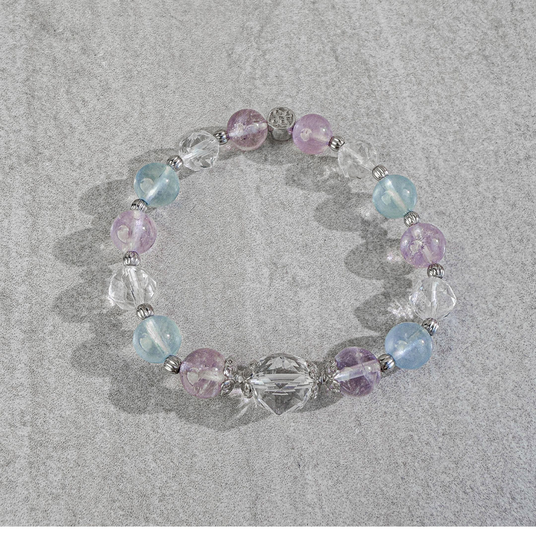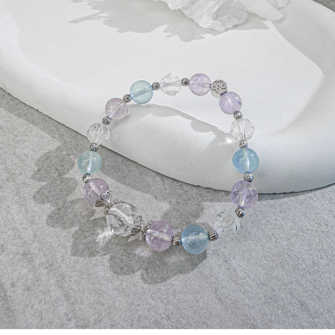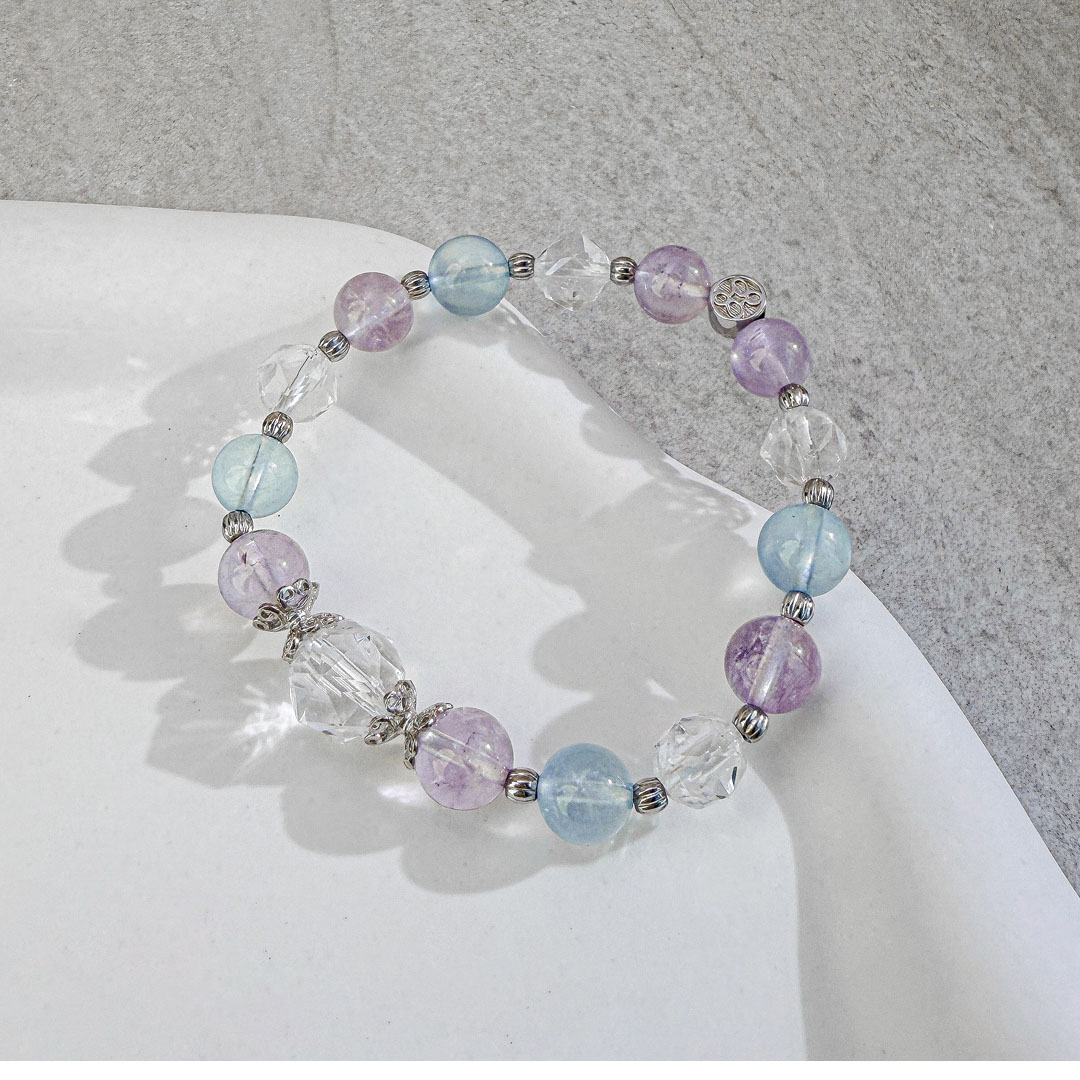 天然石│白水晶 ‧ 紫水晶 ‧ 海藍寶│純情氣泡 ‧ 水晶手串