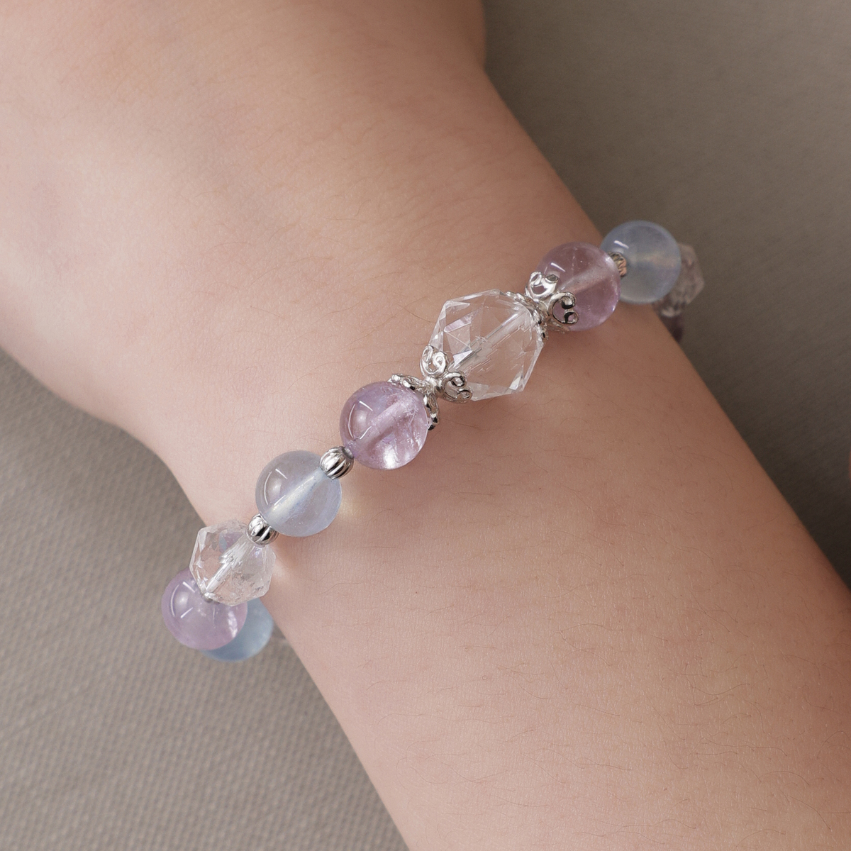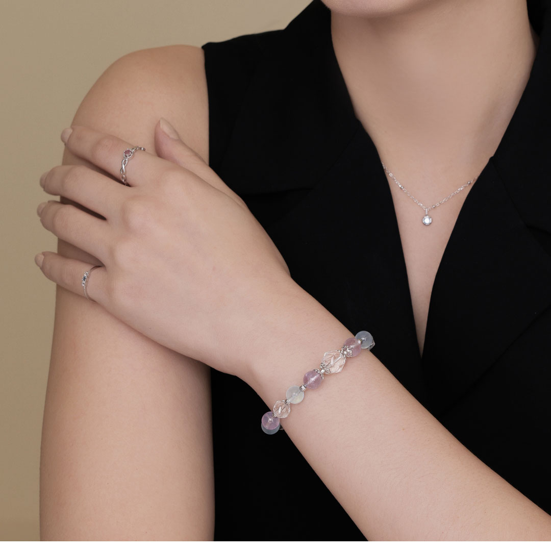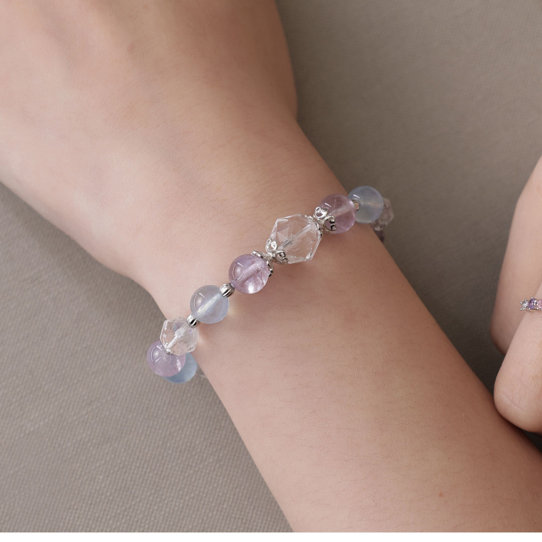 天然石│白水晶 ‧ 紫水晶 ‧ 海藍寶│純情氣泡 ‧ 水晶手串