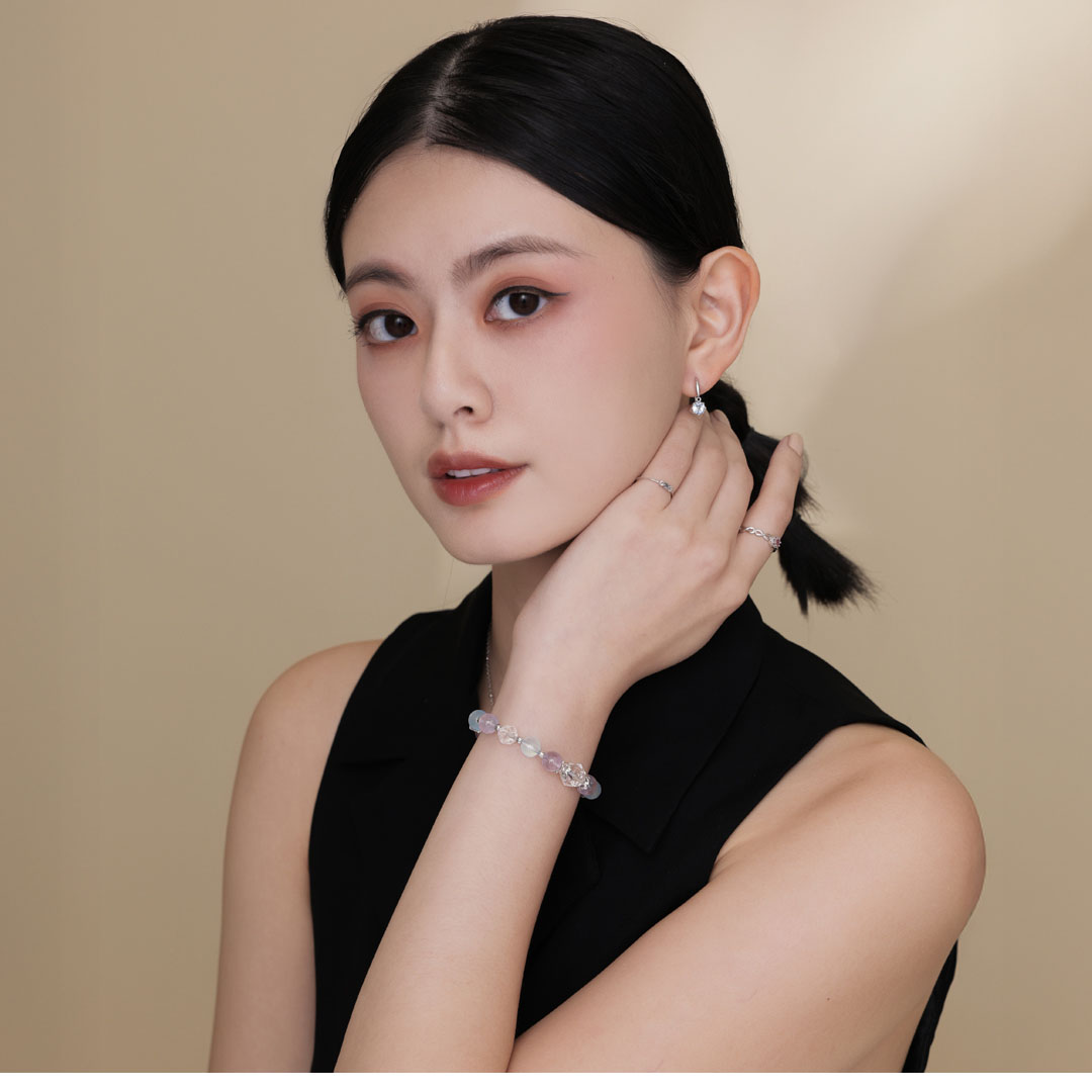 ▴ 天然礦石是在地殼中自然形成的晶體礦物,每一顆的色澤深淺、結晶、髮根都不大相同,且晶體會有冰裂棉絮、坑窪、黑點、礦缺等「天然特質」,並非瑕疵。