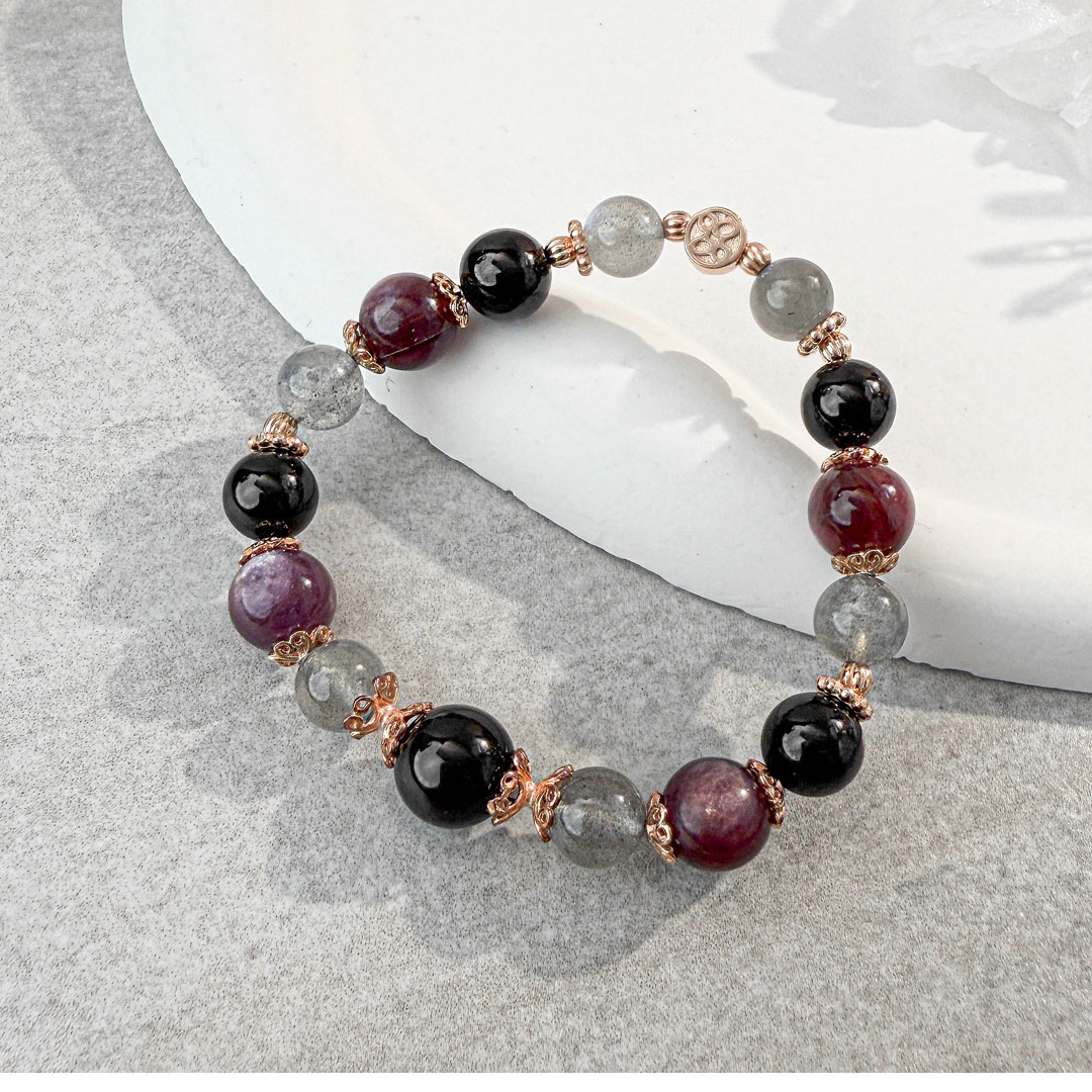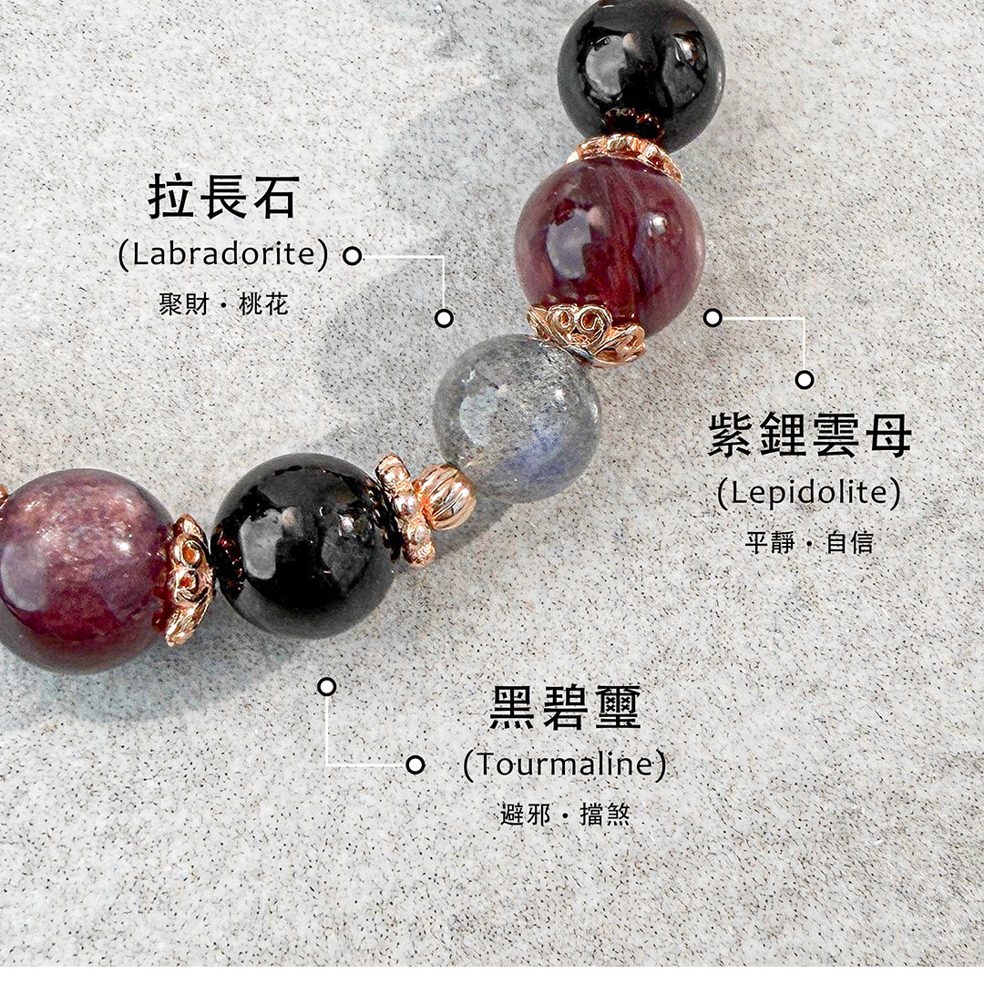 加入上次未結帳之商品 × 天然石│黑碧璽 ‧ 拉長石 ‧ 紫鋰雲母│光采動人 ‧ 水晶手串