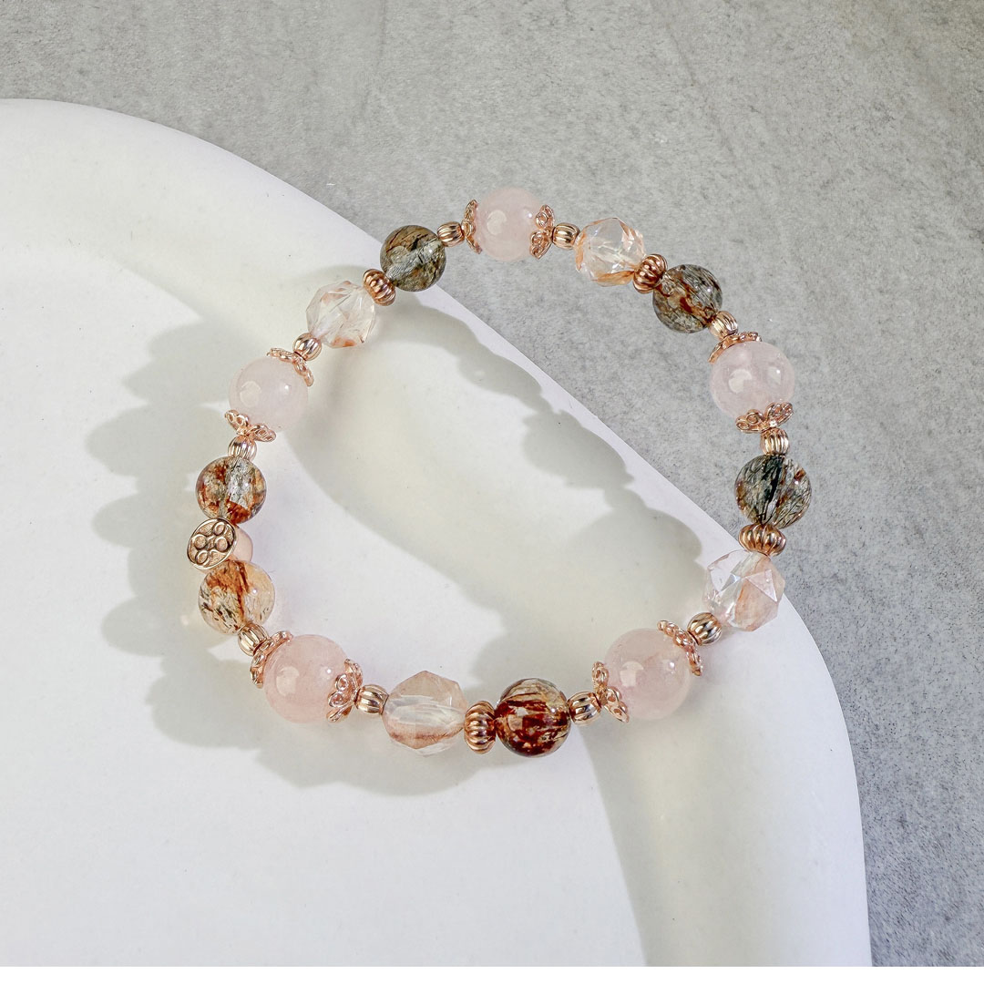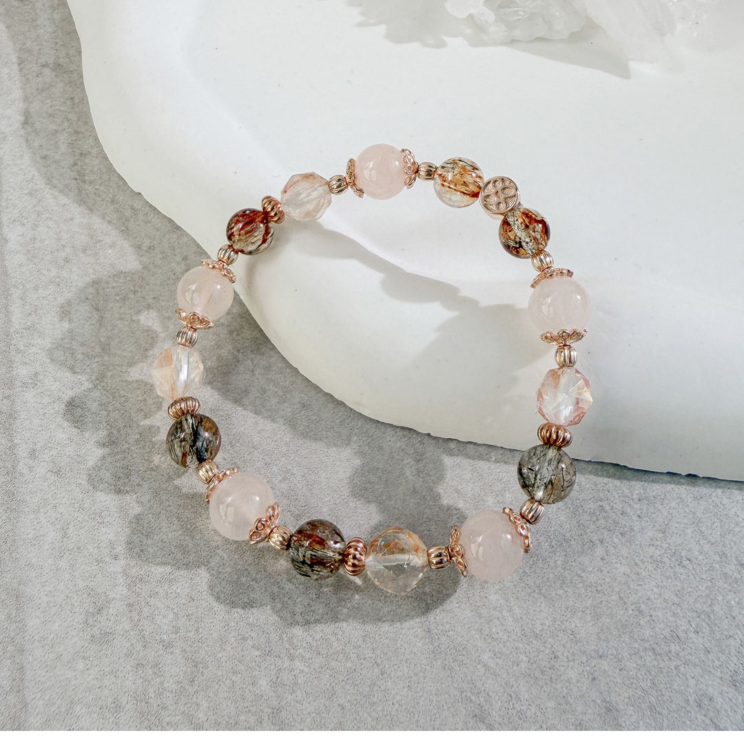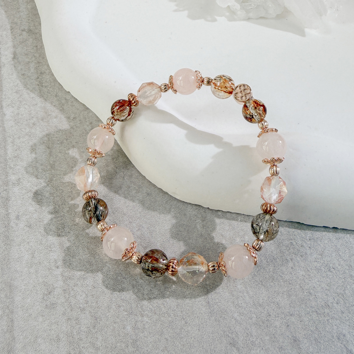 粉水晶 ‧ 黑金超七 ‧ 紅膠花