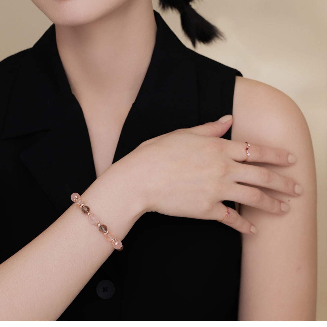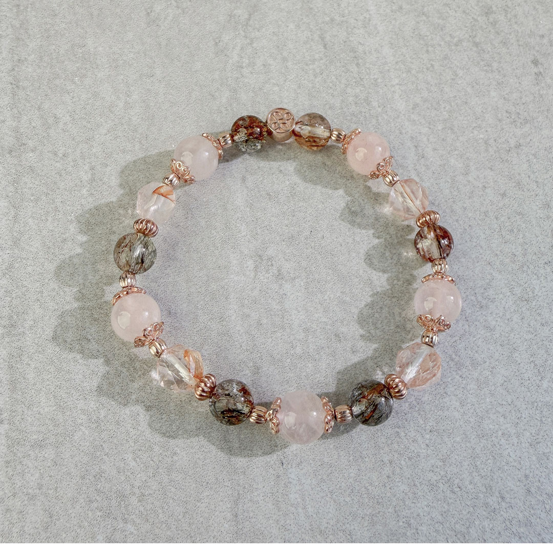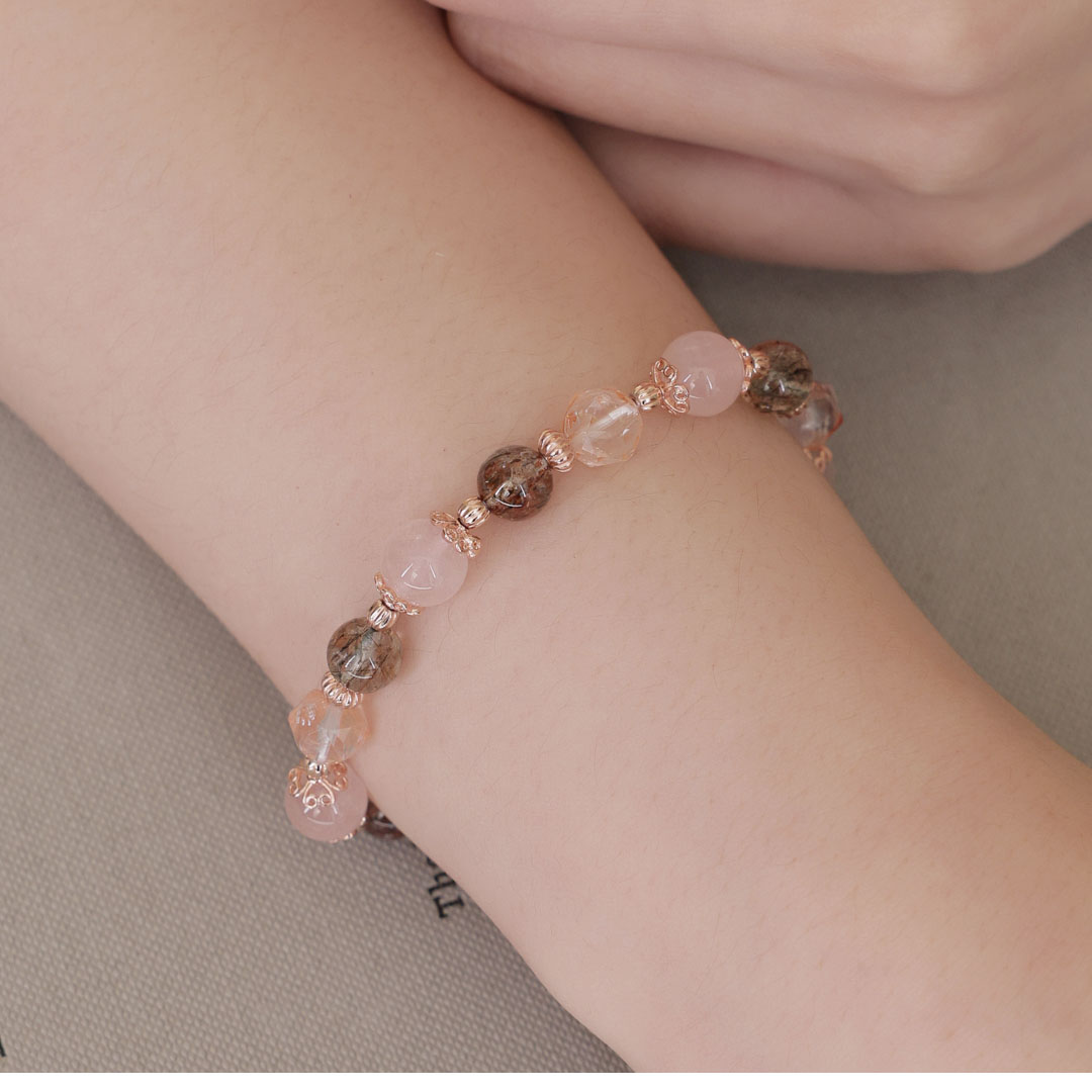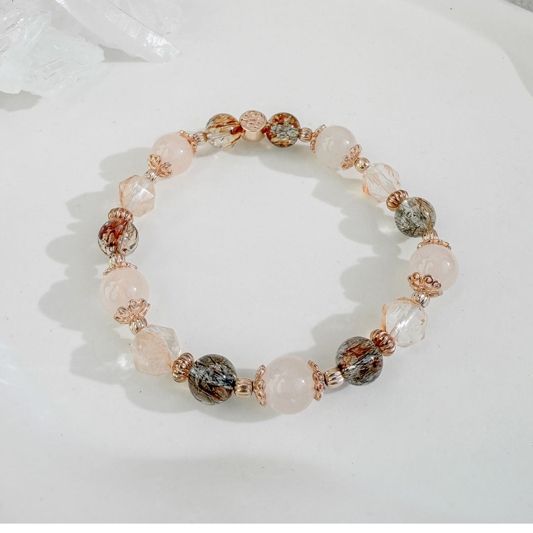 粉水晶 ‧ 黑金超七 ‧ 紅膠花