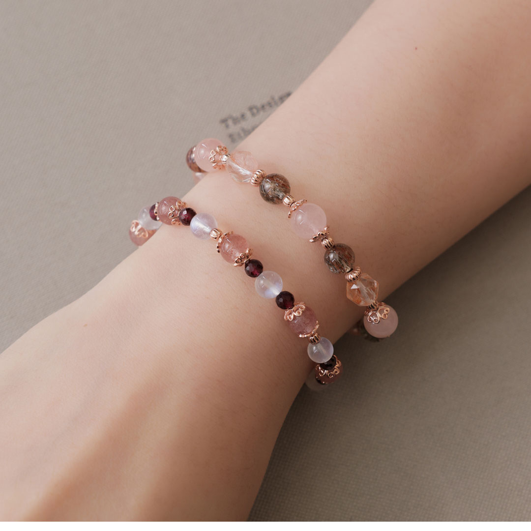 粉水晶 ( Rose Quartz ) 又稱「薔薇水晶」,是著名的愛情寶石, 當人們沉浸在粉紅泡泡中,對愛情和自身魅力都會有所提升。