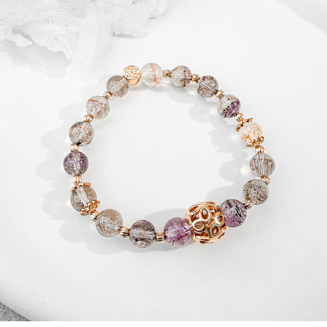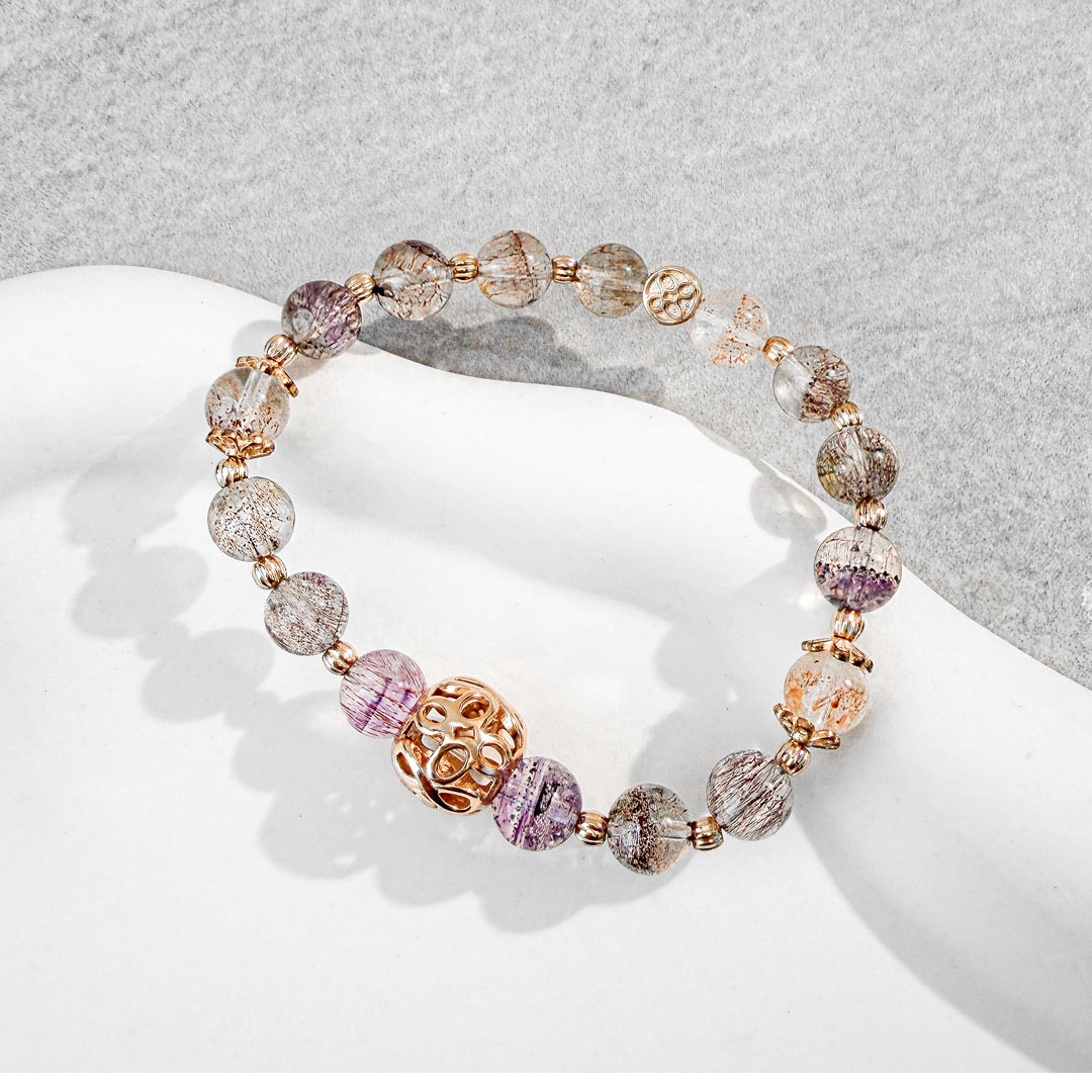 超級七 ( Super Seven ) 內含紫水晶、茶晶、鈦晶、黃磷鐵礦、針鐵礦、纖維礦、金紅石七種礦,集各種水晶的優點於一身。