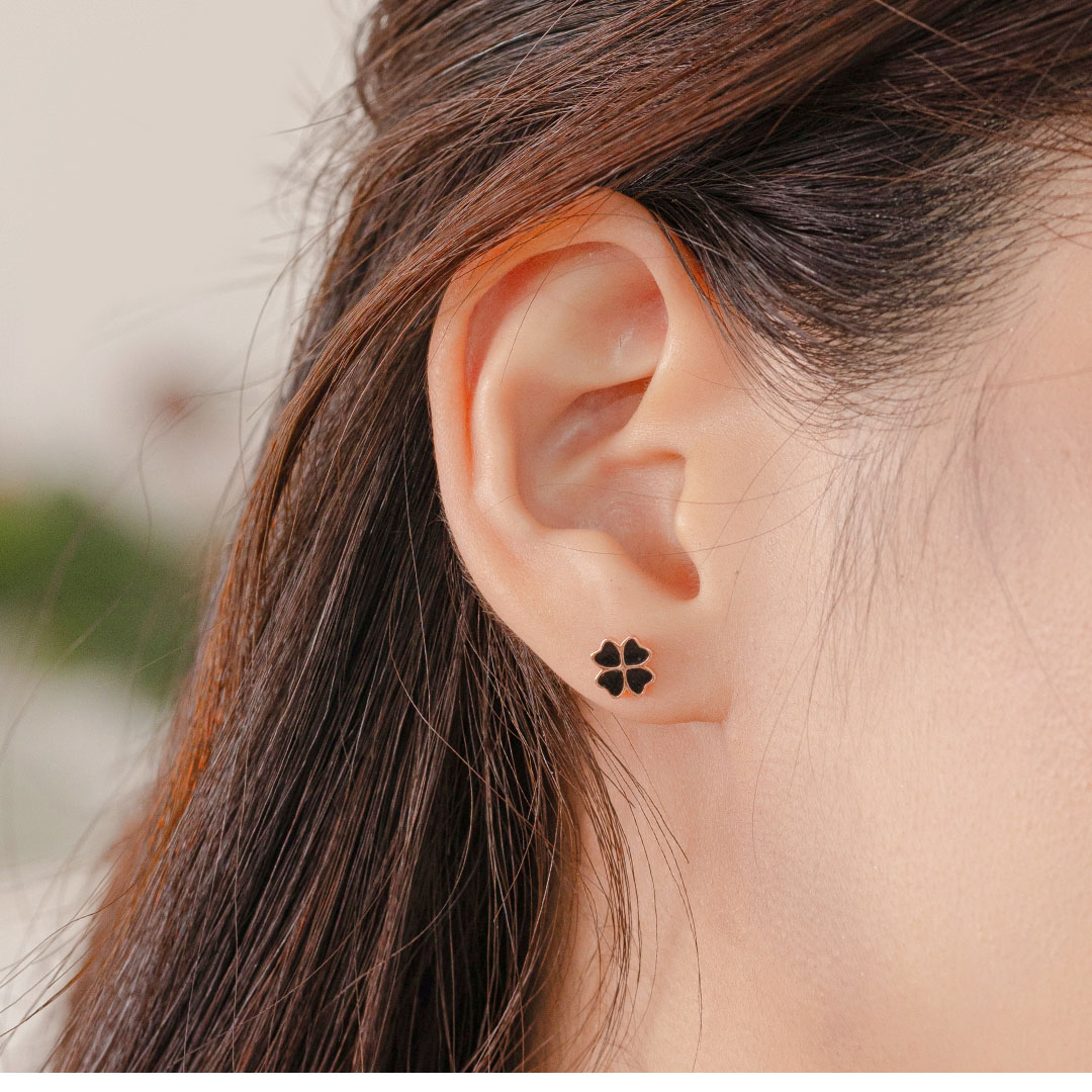 玫瑰金和黑色的組合形成對比,設計精巧而不失奢華感。這款耳環適合各種服裝風格,無論是正式場合還是休閒聚會,都凸顯獨特的個性。