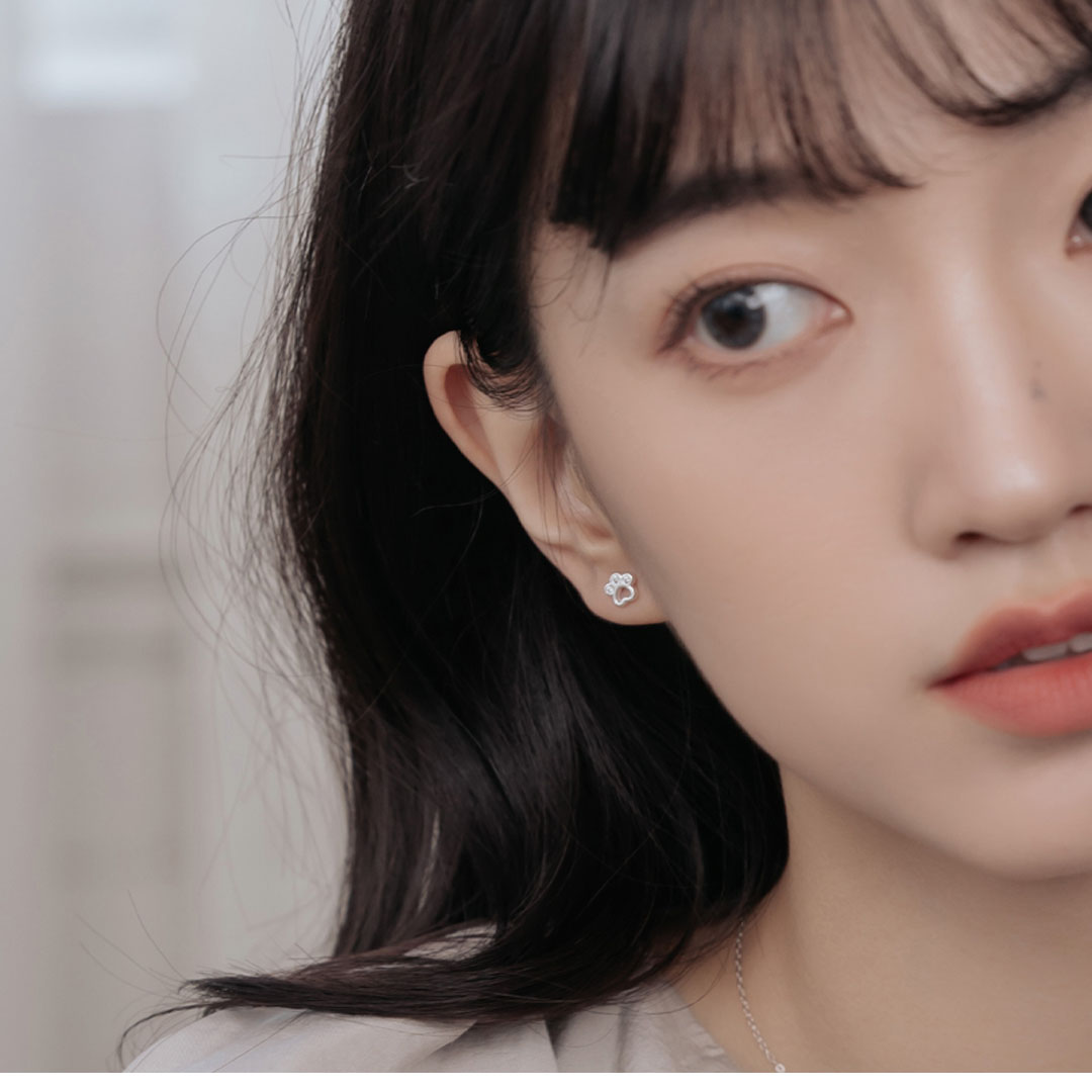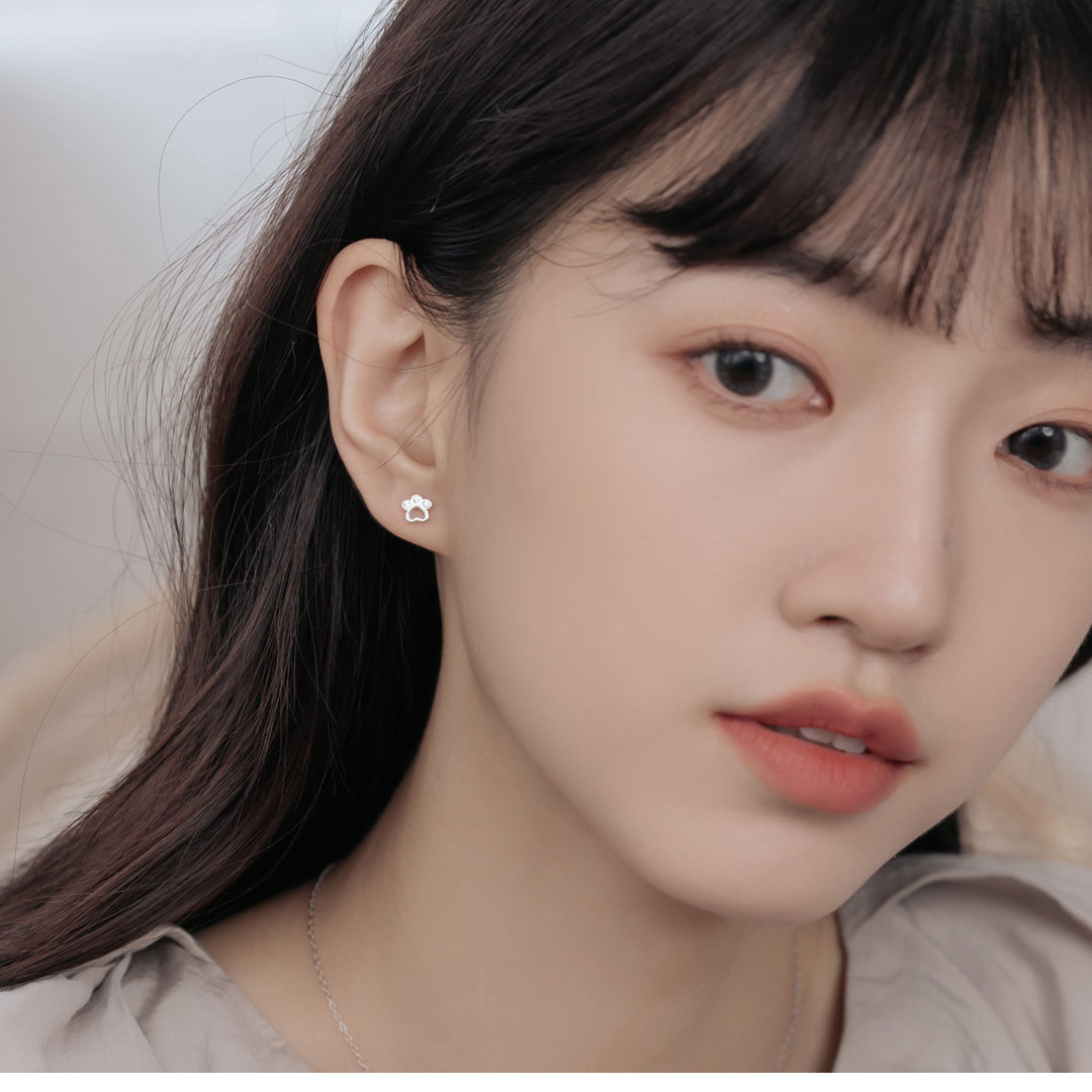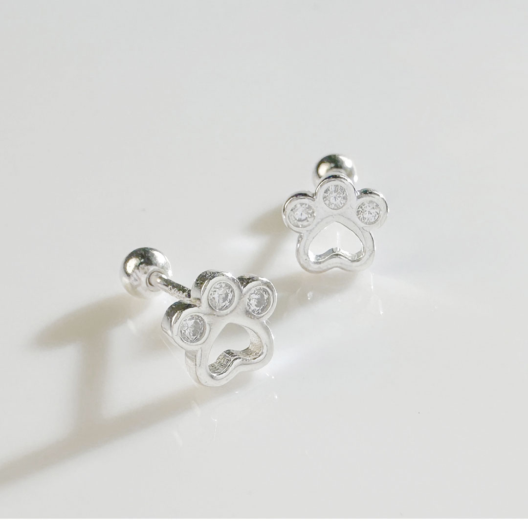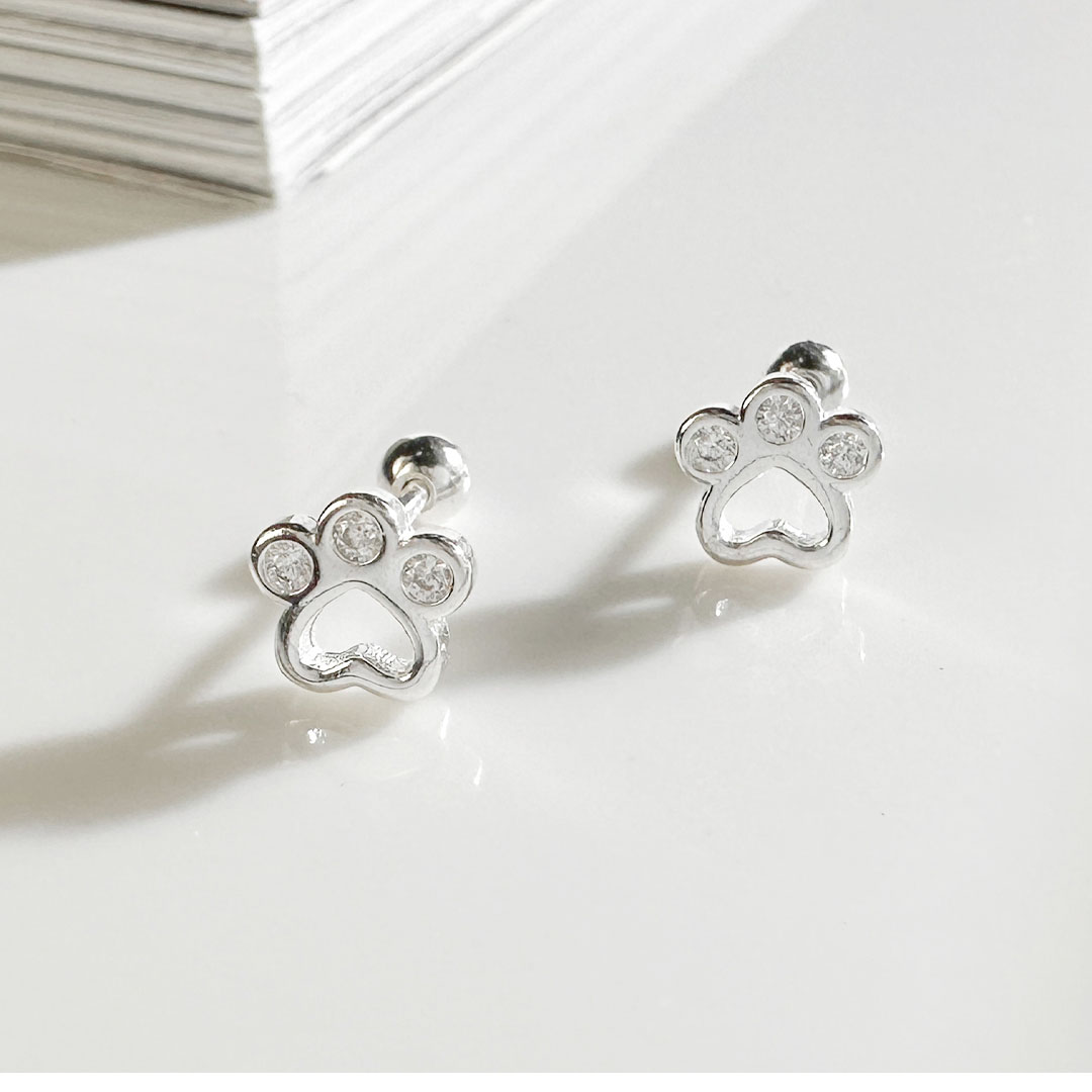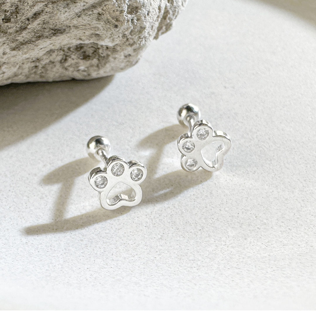 這對耳環以貓掌為靈感,小巧可愛,適合愛動物的人士。每個爪印中都鑲嵌有小鋯石,增添了一抹亮眼的細節。