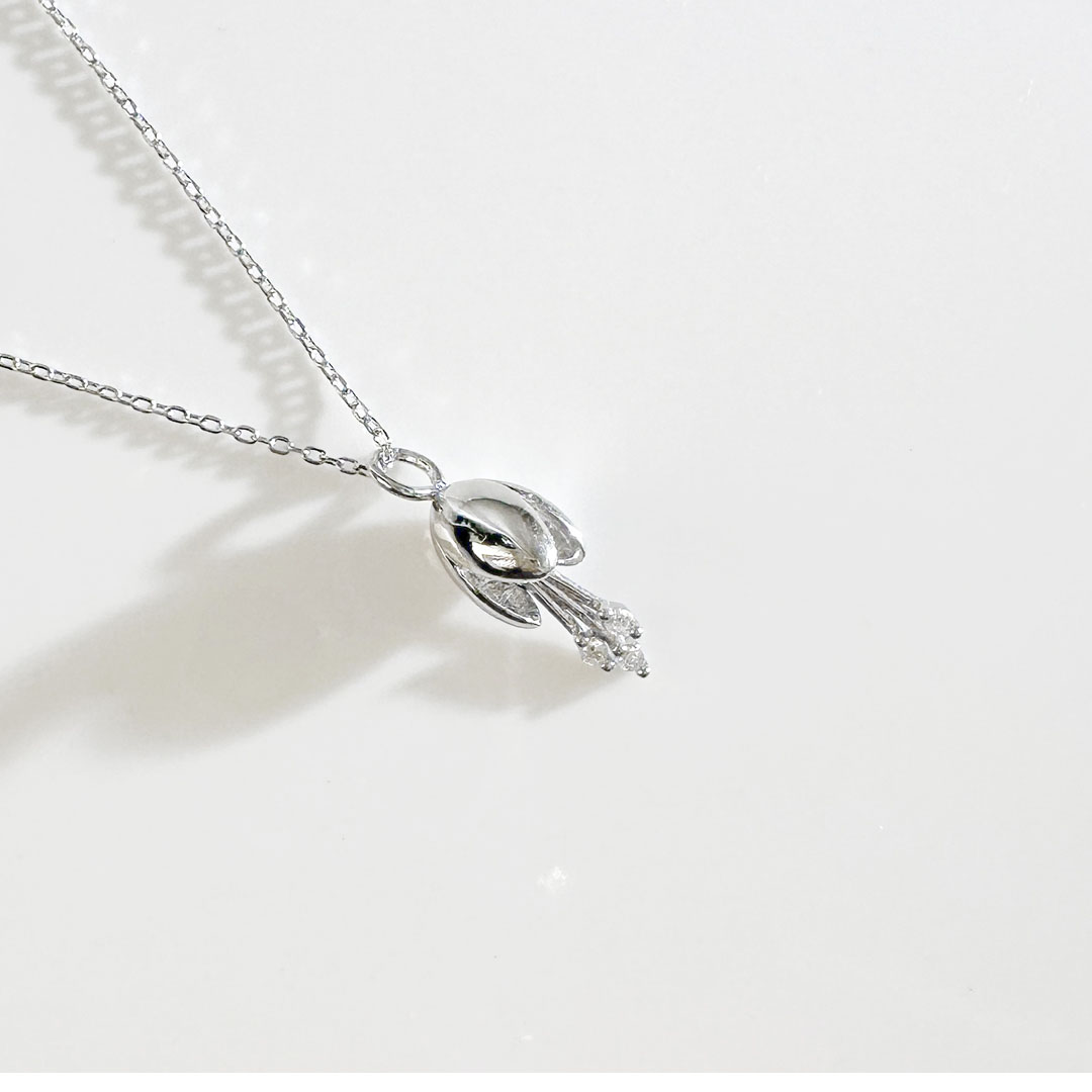 項鍊的吊墜是一朵精緻的鬱金香花朵,呈現出清新感和細膩的工藝。