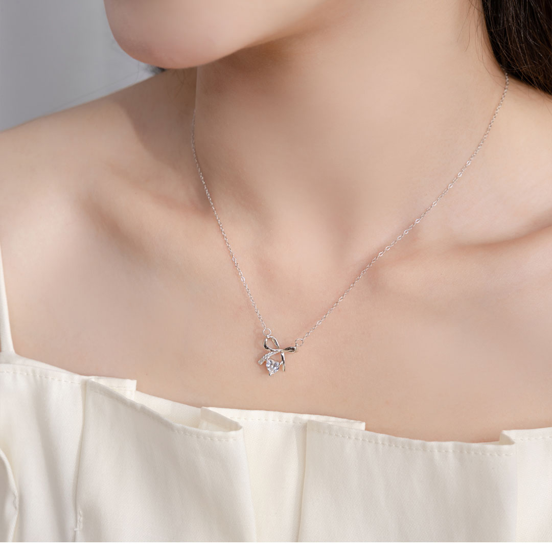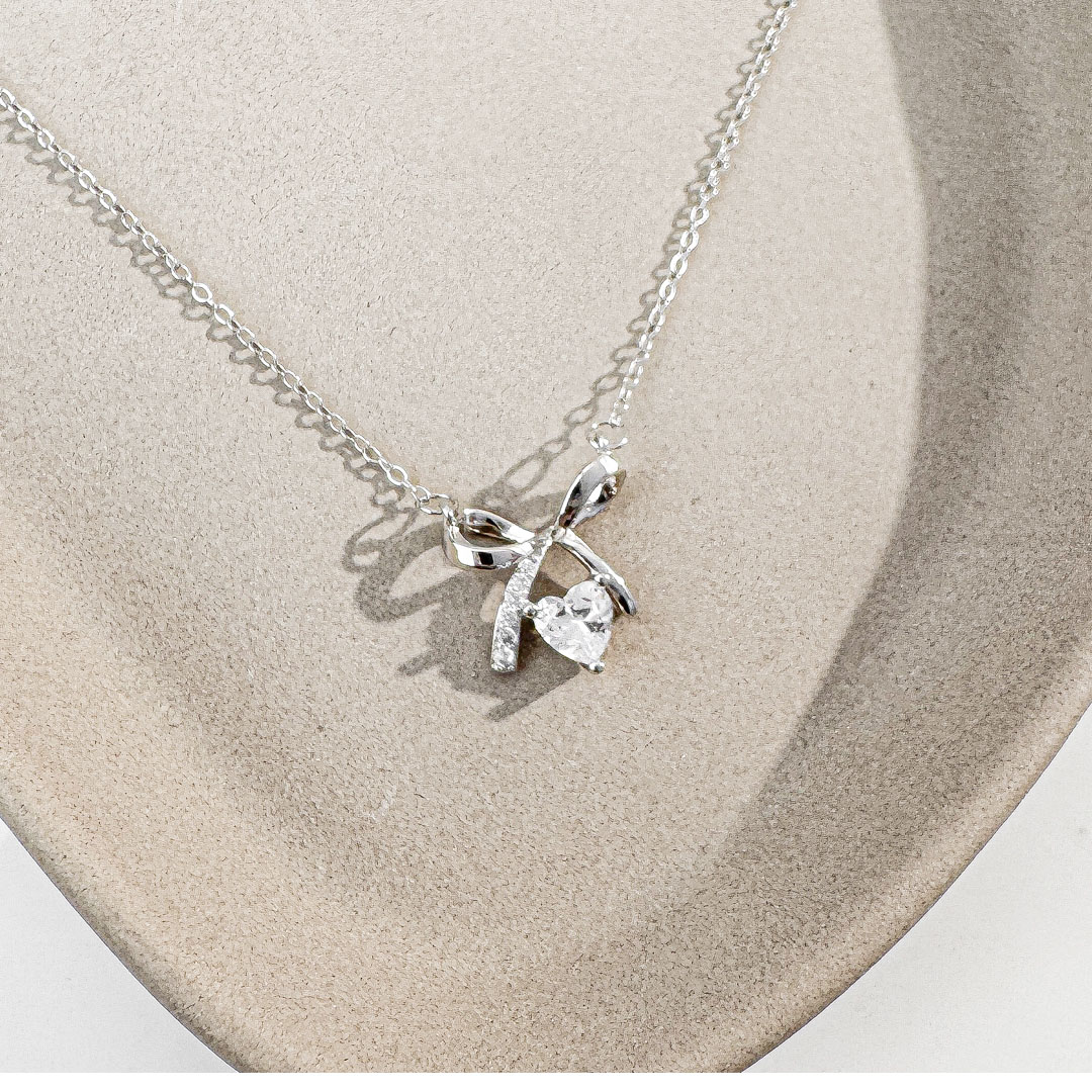 加入上次未結帳之商品 × 蝴蝶結心型鑽 ‧ 純銀項鍊