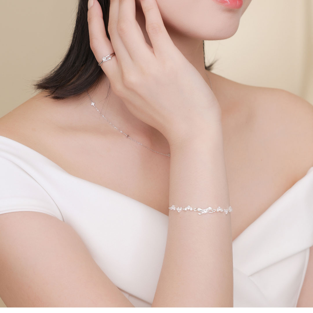 加入上次未結帳之商品 × 蝴蝶結愛心鑽 ‧ 純銀手鍊