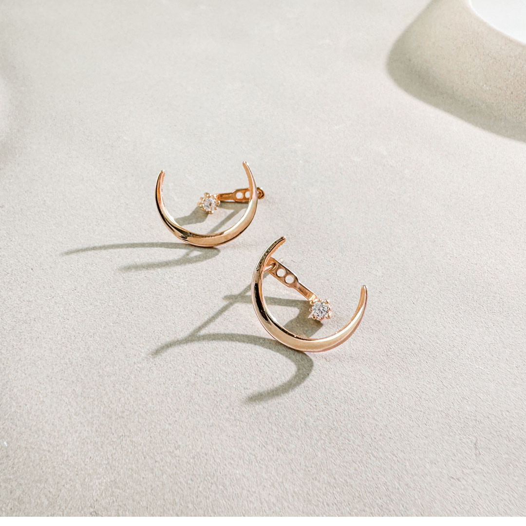 以迷人的旋月造型為特色,綴有微小閃耀的鋯石,呈現出一種立體的美感。融合了簡約與獨特,是個性與品味的象徵。