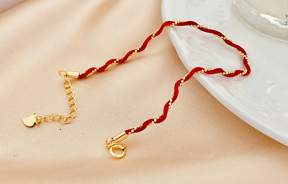 金鍊與紅線的搭配,讓你將幸福牢牢繫在手中!時尚逗趣的造型,讓你的另一半就此被吸引而來、相繫前行。