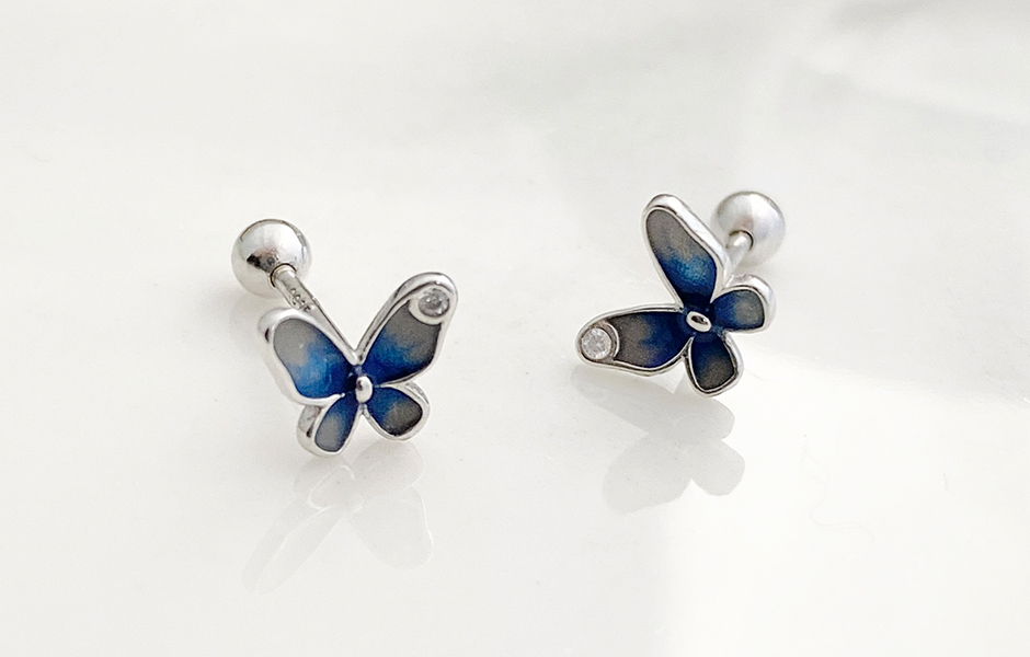 氣質藍蝴蝶與小鑽的點綴,精緻可愛,成為你耳朵上的小亮點,在沉穩莊重中卻又不失甜美,將個人特色極致發揮。